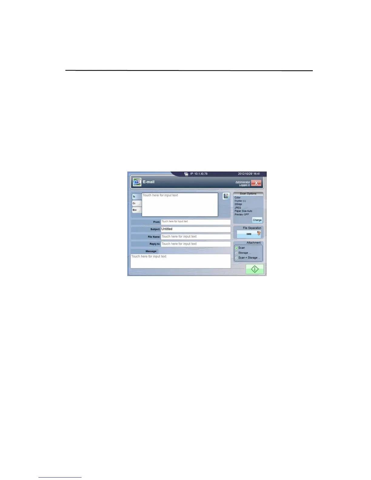 2. Tap the [E-mail] button on the touch panel to open the following [E-mail]