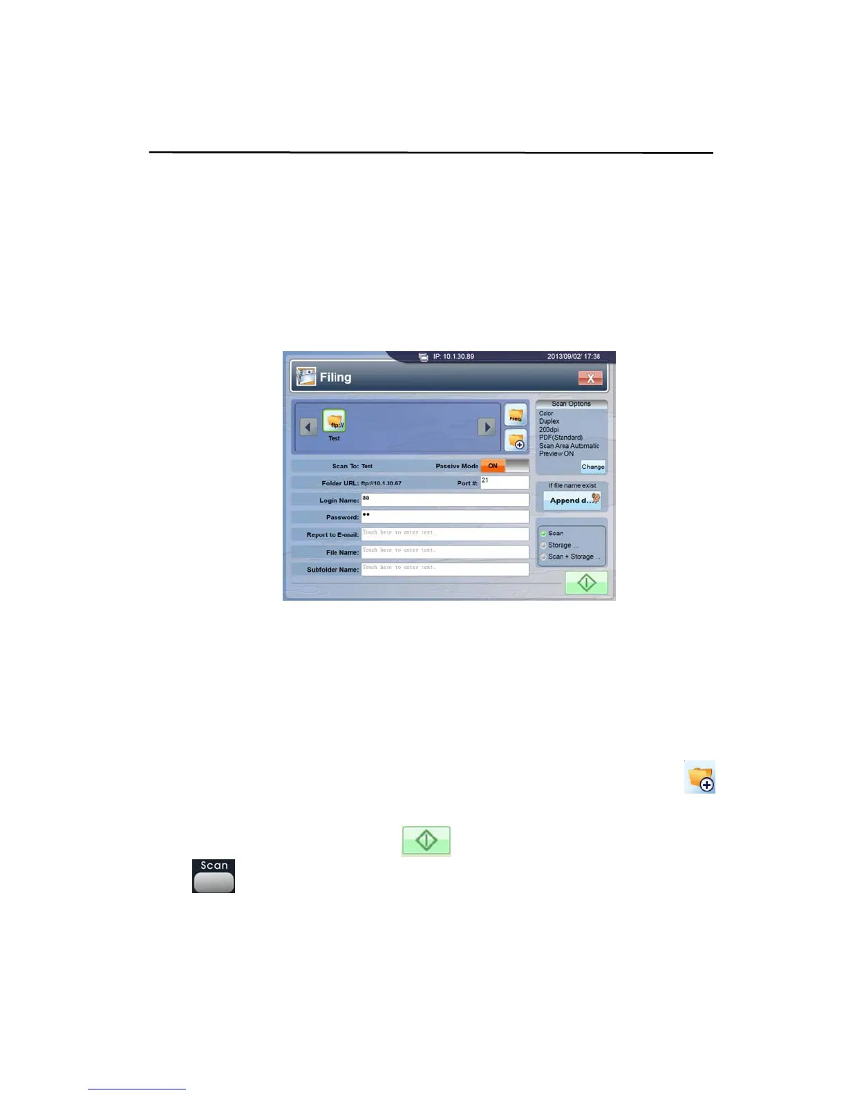 To Send a Scanned Image to a Filing Server: