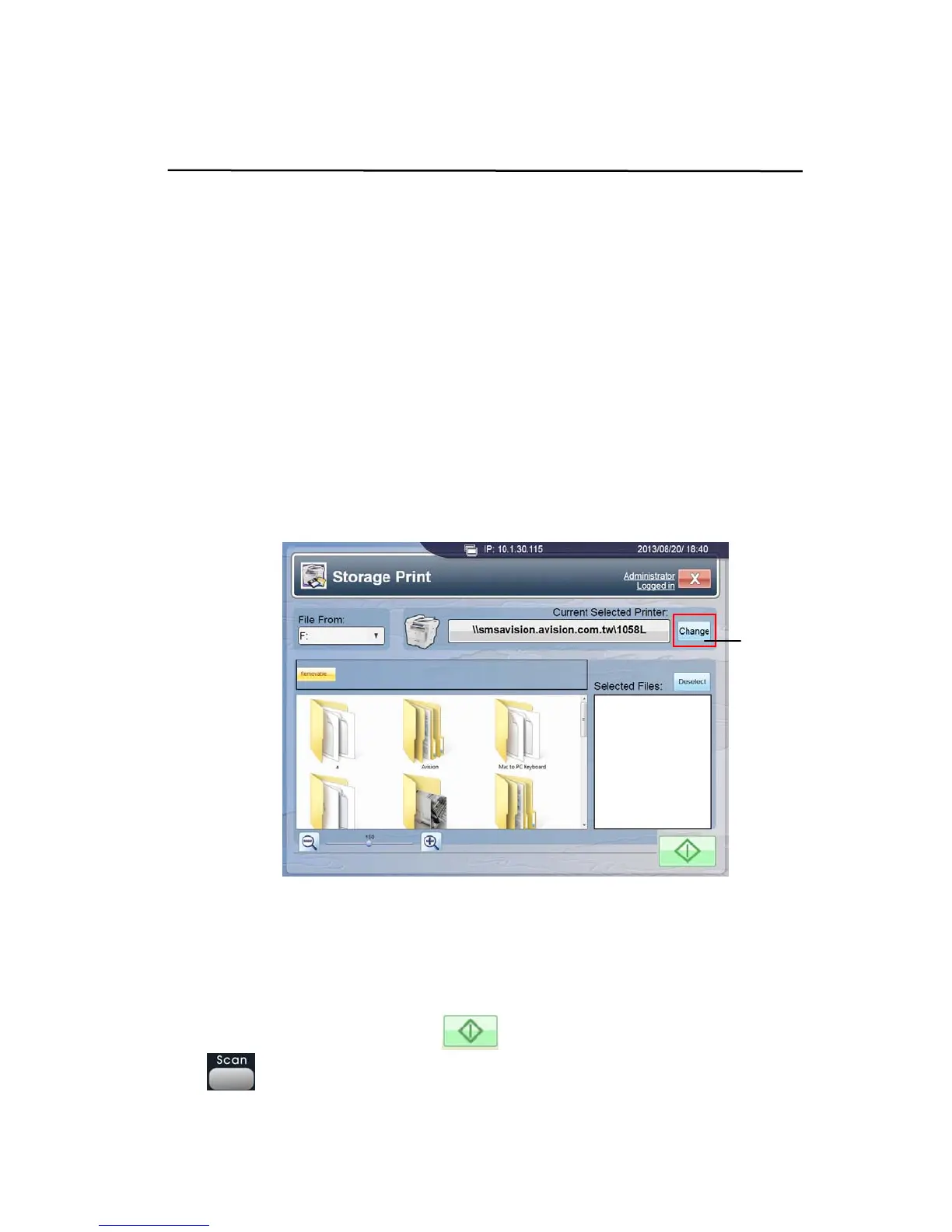 4. The [Storage Print] screen pops up on the touch panel, as shown below: