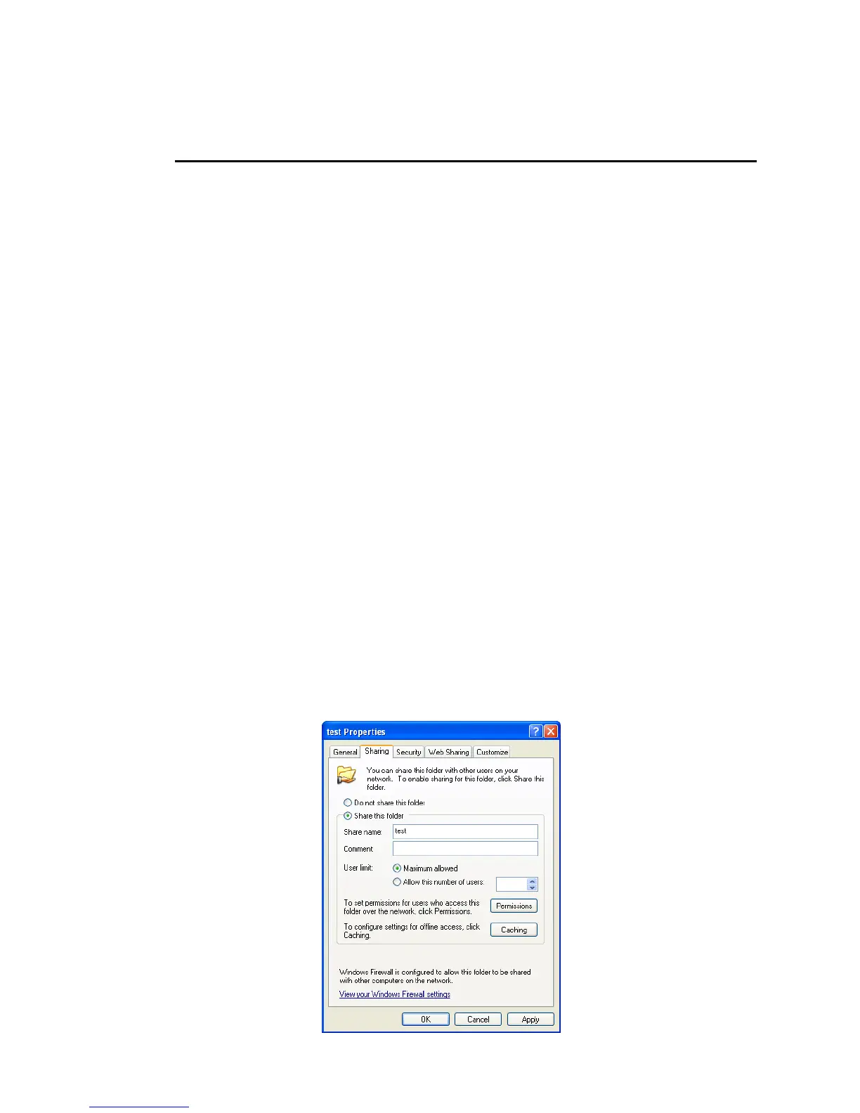 shared directory Properties dialog box under the Windows XP, select “Sharing” tab,