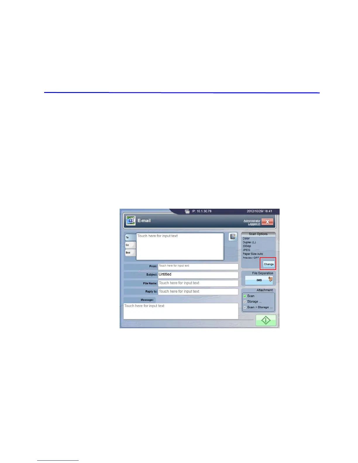 Tap the [E-mail (or Filing)] button on the touch panel to open the following