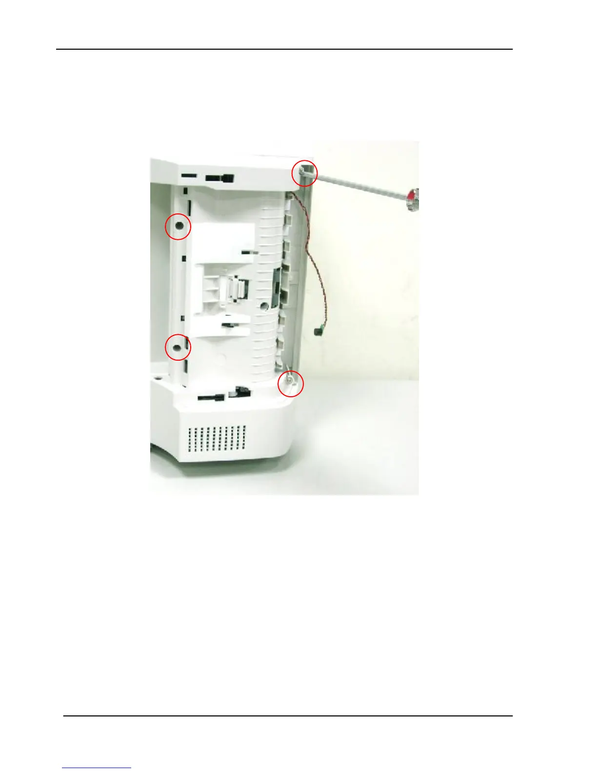 2. Remove the 4 fixing screws on the upper base assembly.