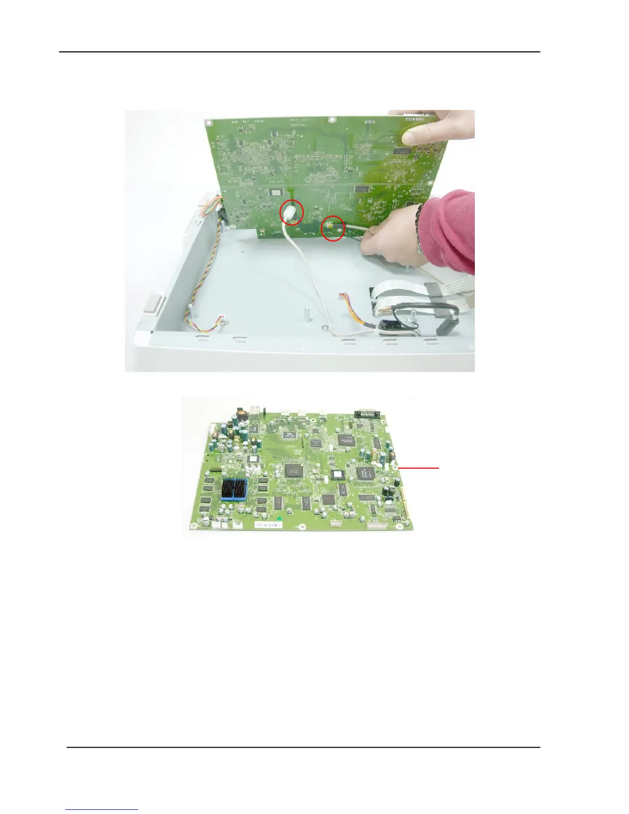 5. Unplug the 2 cables on the back of the main board to remove the main board.
