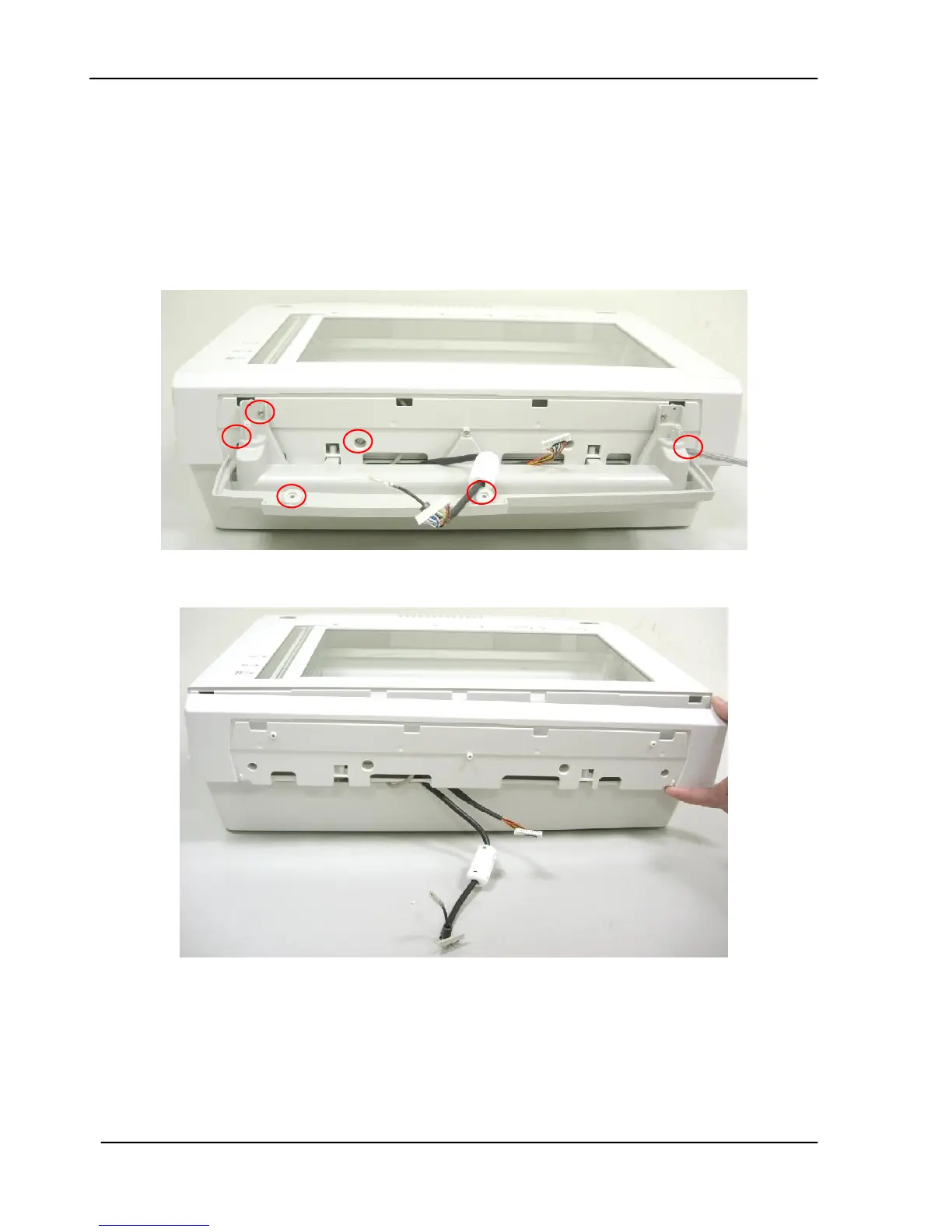 5. Remove the 7 fixing screws on the bottom of panel assembly.
