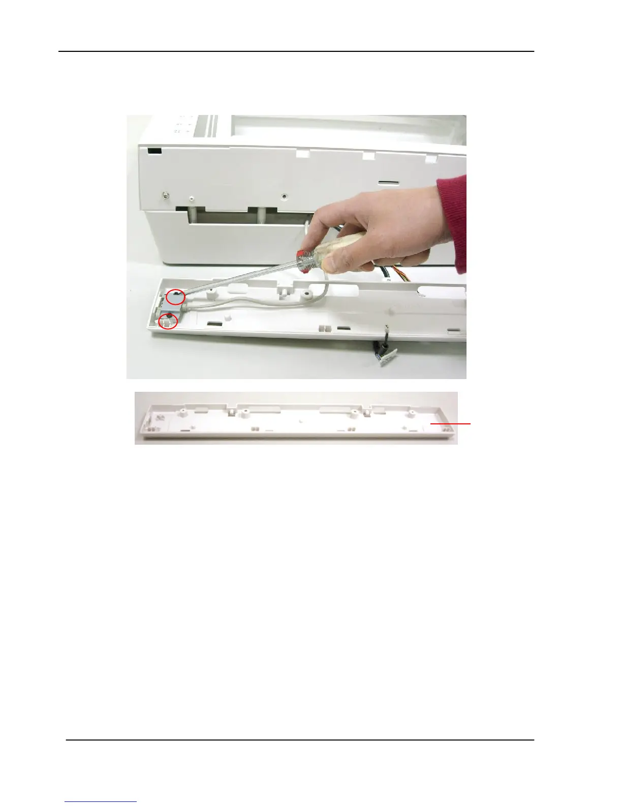 7. Remove the 2 fixing screws on the back cover of the panel.