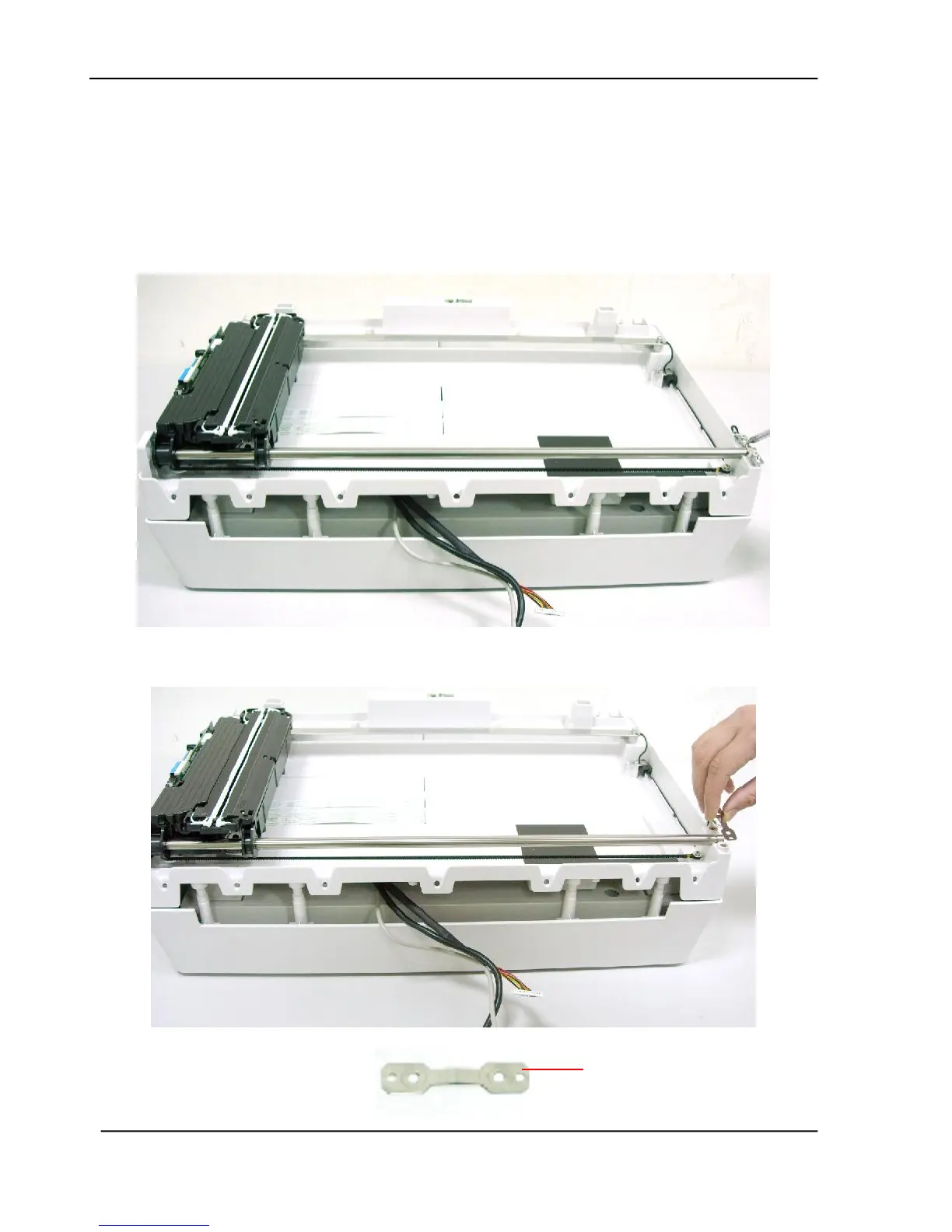 4. Remove the 2 fixing screws on the metal plate fixing the sliding rod.