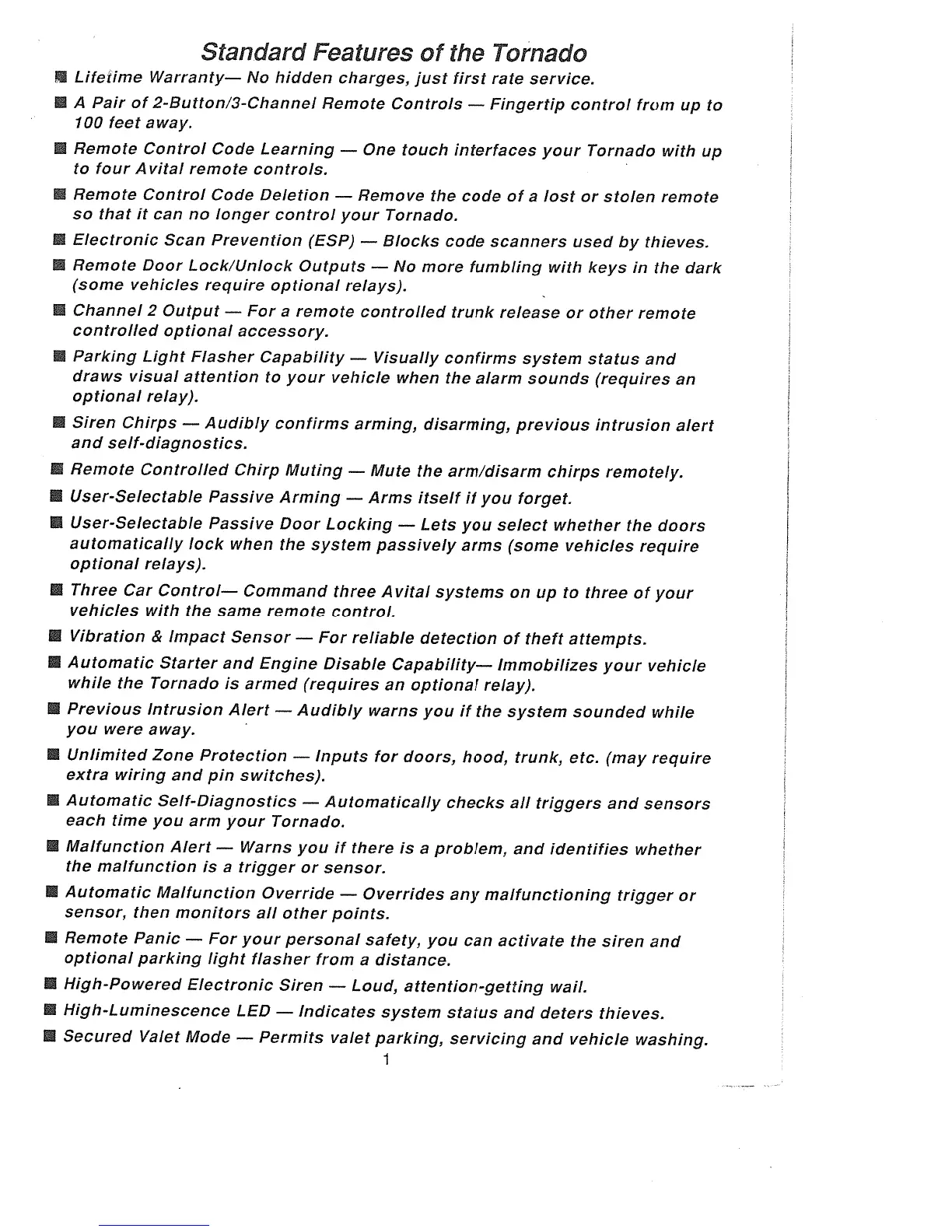 Avital Tornado - Standard Features of the Tornado