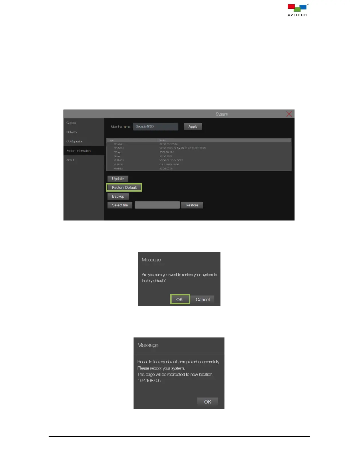 Figure C.1.2 Warning Message Window to Confirm the Factory Default Process