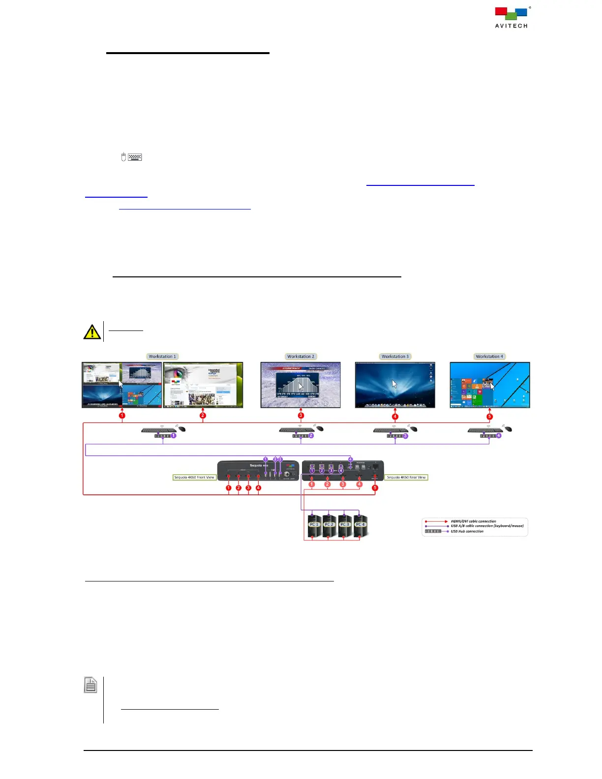 mouse for workstation one with HDMI OUT port 1 and 2 must be connected to USB port 1, and the