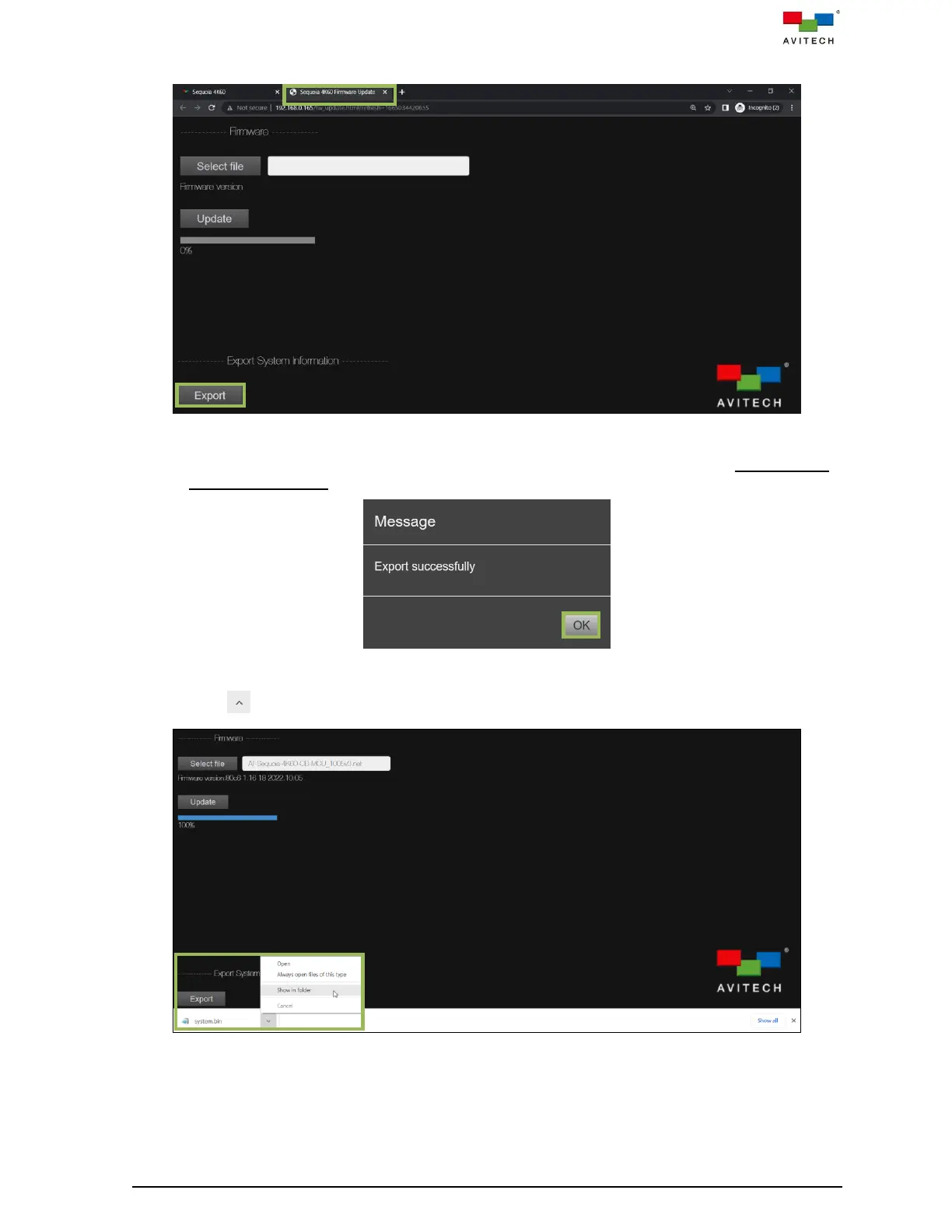 Figure 4.3.4.9 Sequoia 4K60 Firmware Update Page: Export System Information