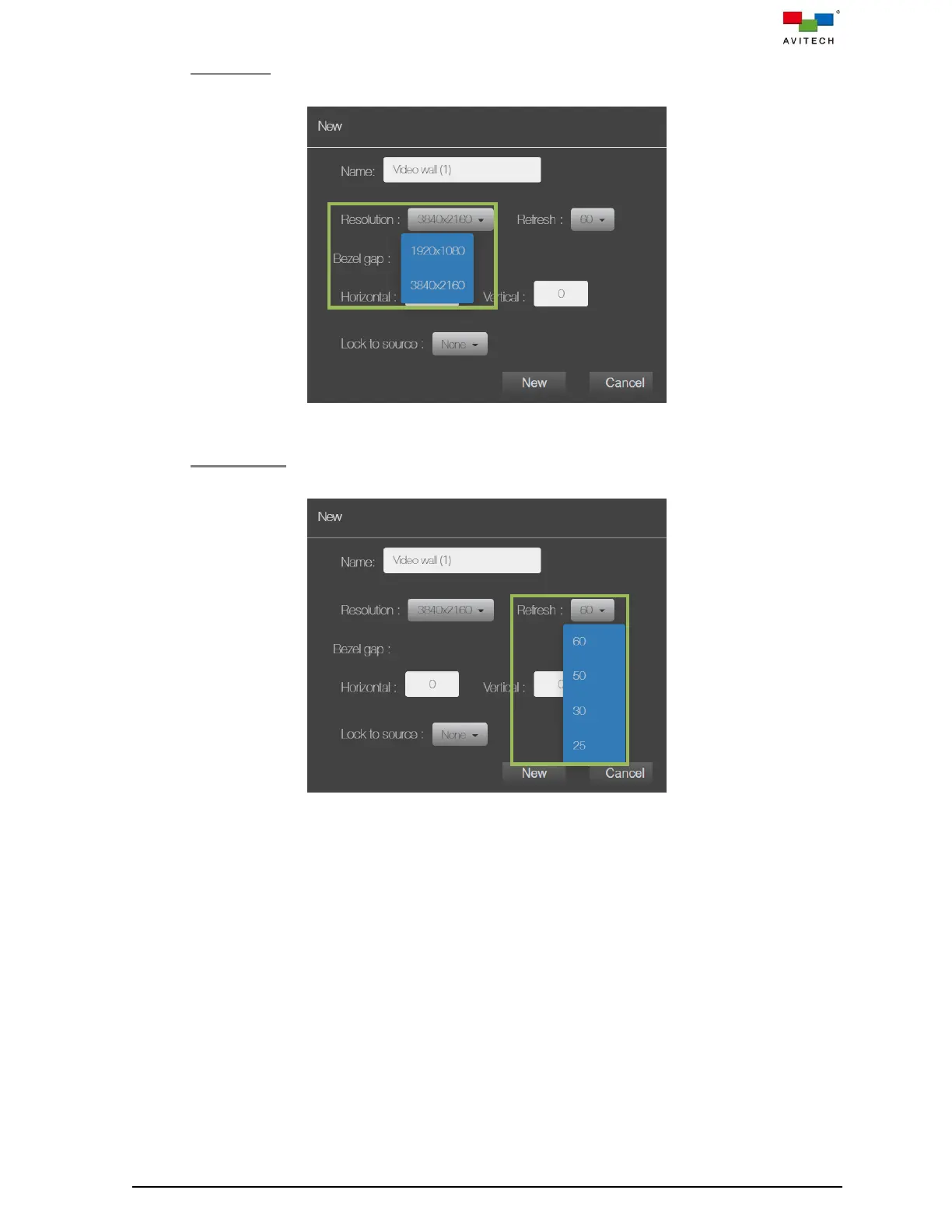 Select a refresh rate from the drop down menu to match the display devices of video wall.