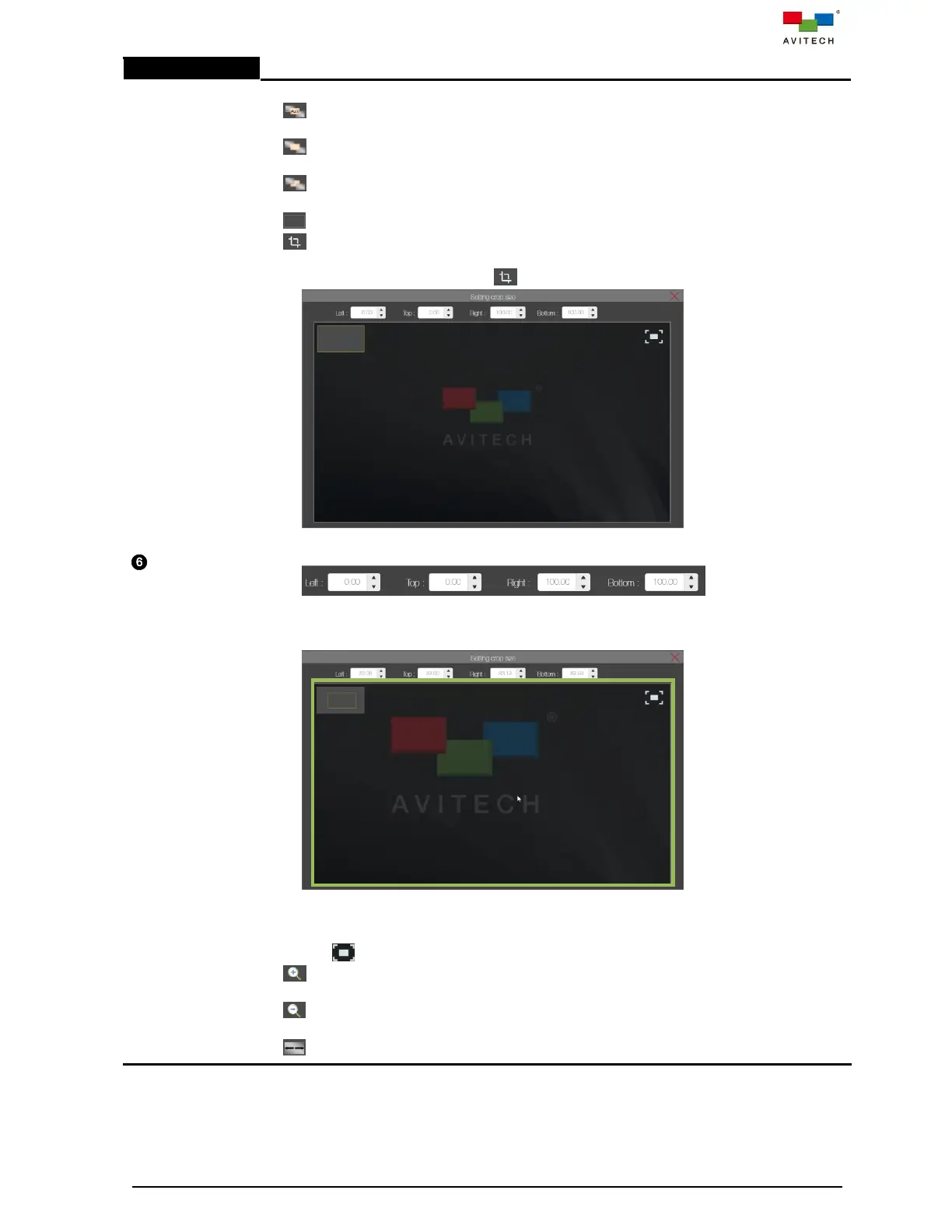 Input (edit) the Top, Down, Left and Right numerical values to create the crop area.