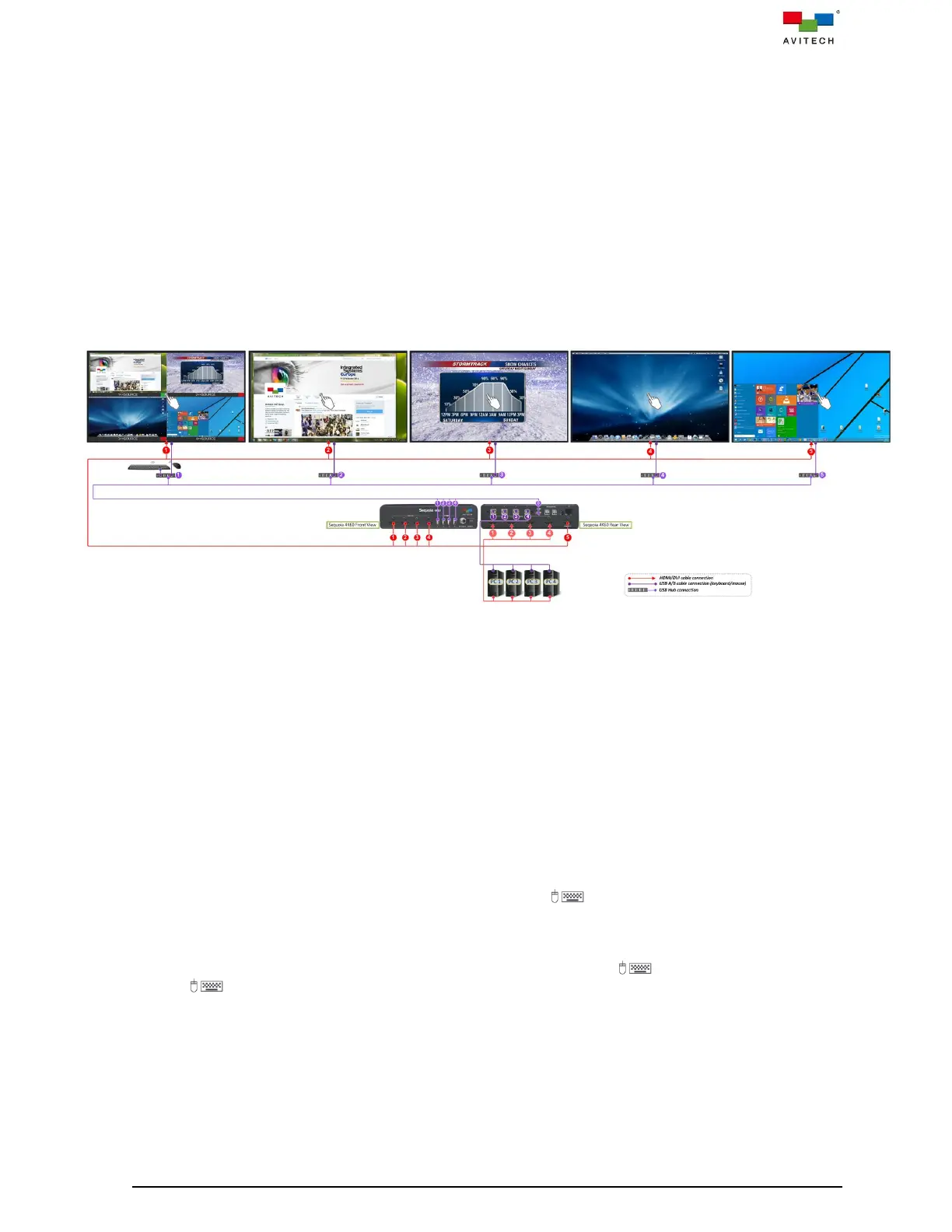 The following figure shows a typical setup with a Sequoia 4K60 that connect to four computer systems