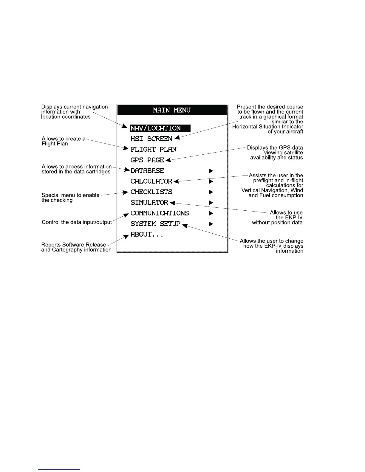 From Moving Map press ‘MENU’ for 1 second to display the Main Menu: