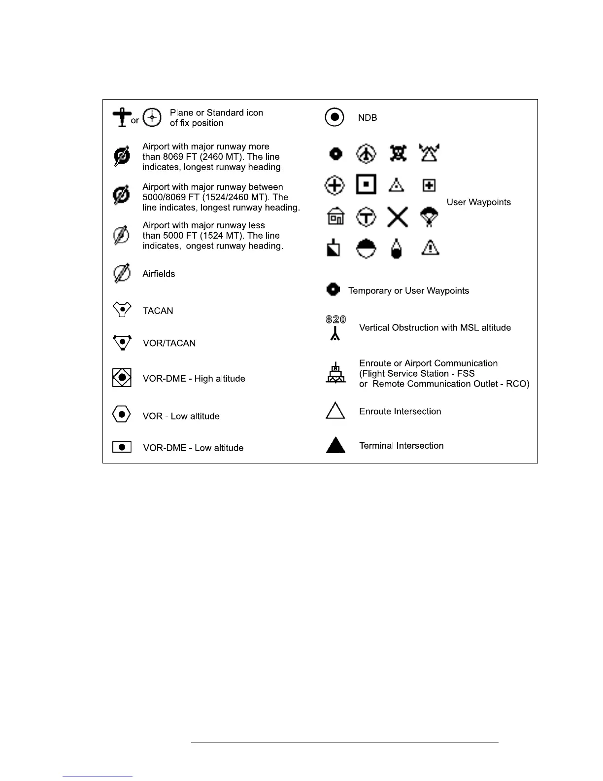 The following icons are displayed on the Moving Map to represent Waypoints,