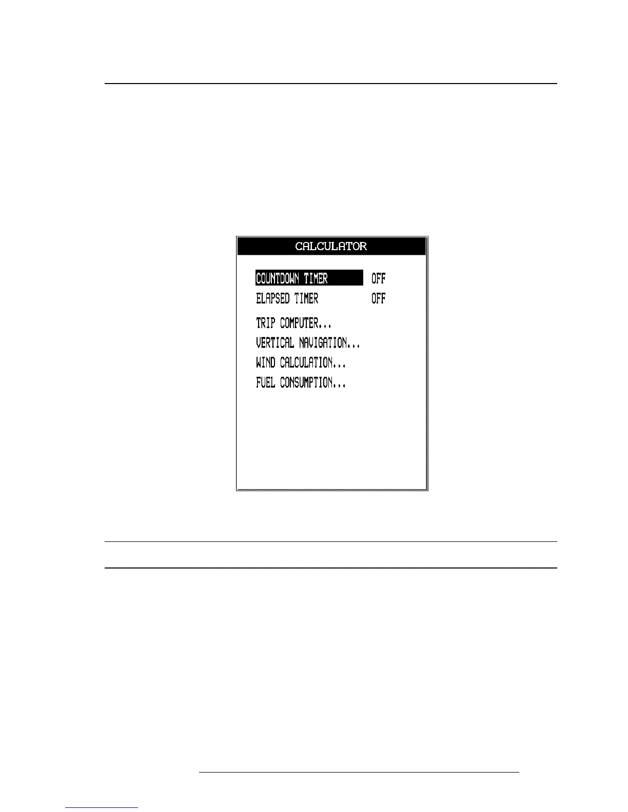 All Calculator functions are based on the active Flight Plan. The active Flight Plan