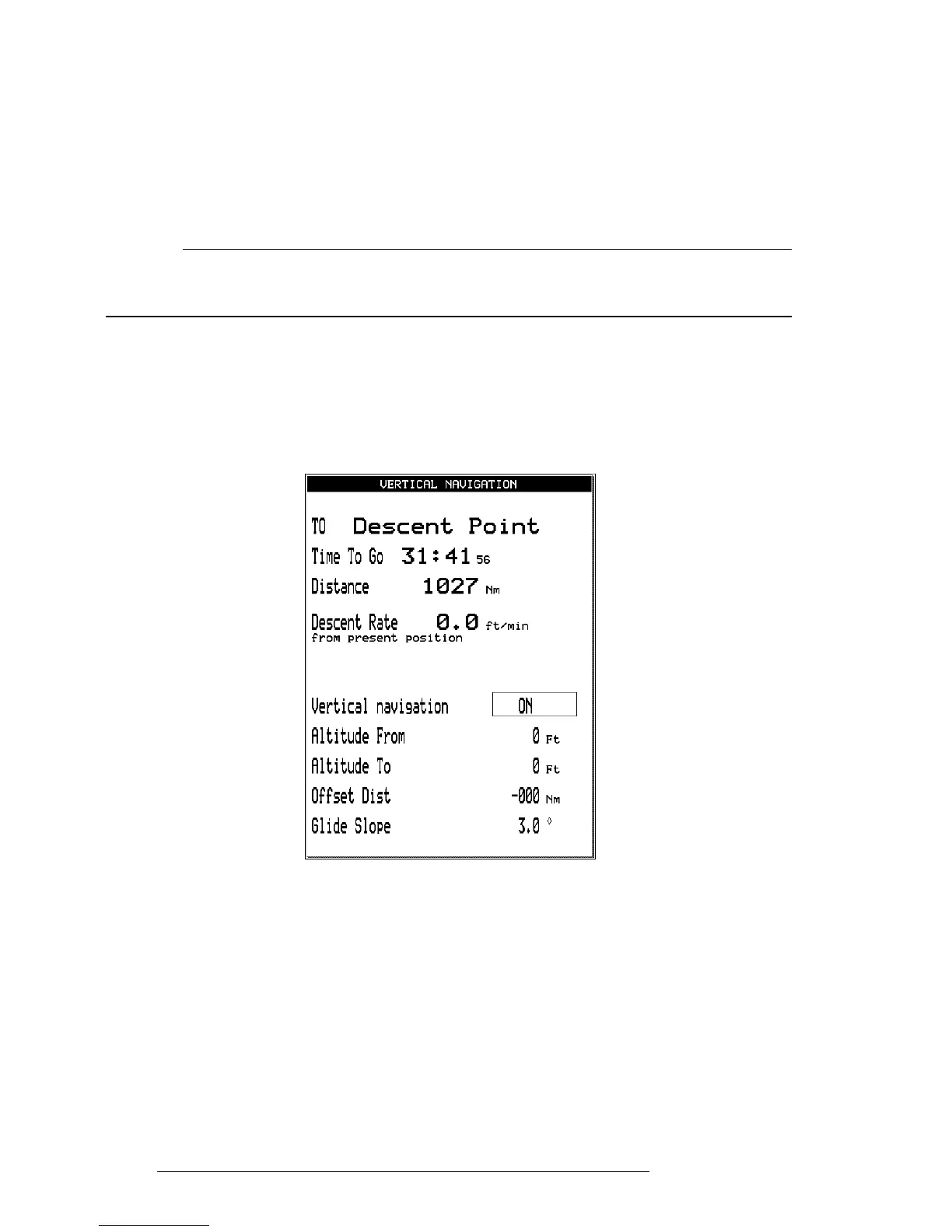 Some values are automatically displayed. Time To Go, Distance, Descent Rate