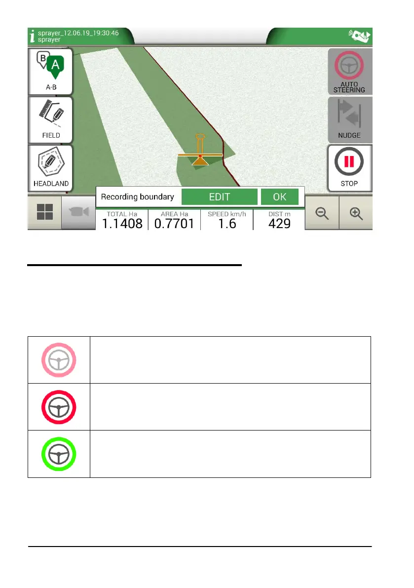 In the Job page, the button marked as “AUTOMATIC STEERING” allows you to enable and disable