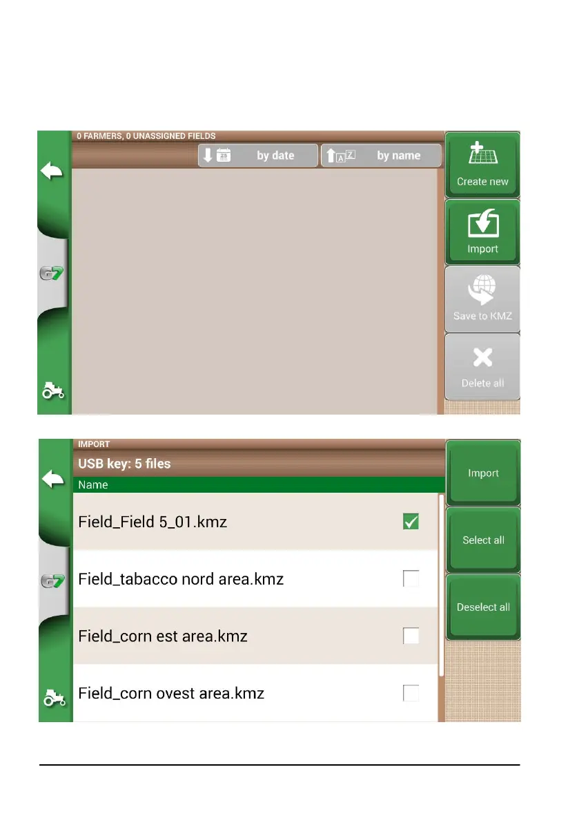 KMZ les you want to import. Connect the USB stick to G7 Farmnavigator using the supplied cable.