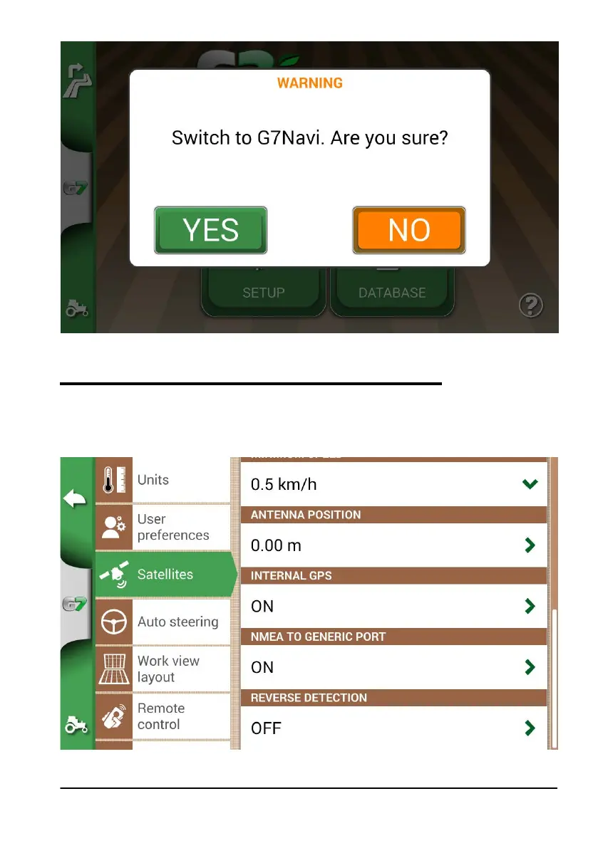 Some third-party devices used on the tractor in complementary mode to G7 Farmnavigator, require