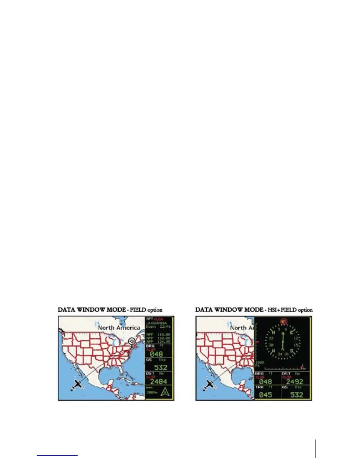 The Data Window is displayed on the top of the Moving Map. This window provides navigation