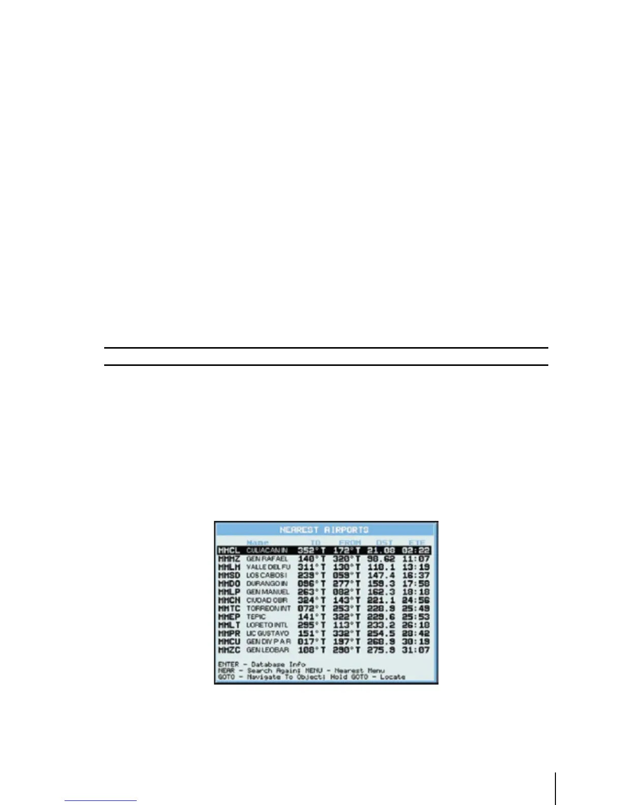 The Nearest page will display the identifiers, bearing To and From, Distance and Estimated Time