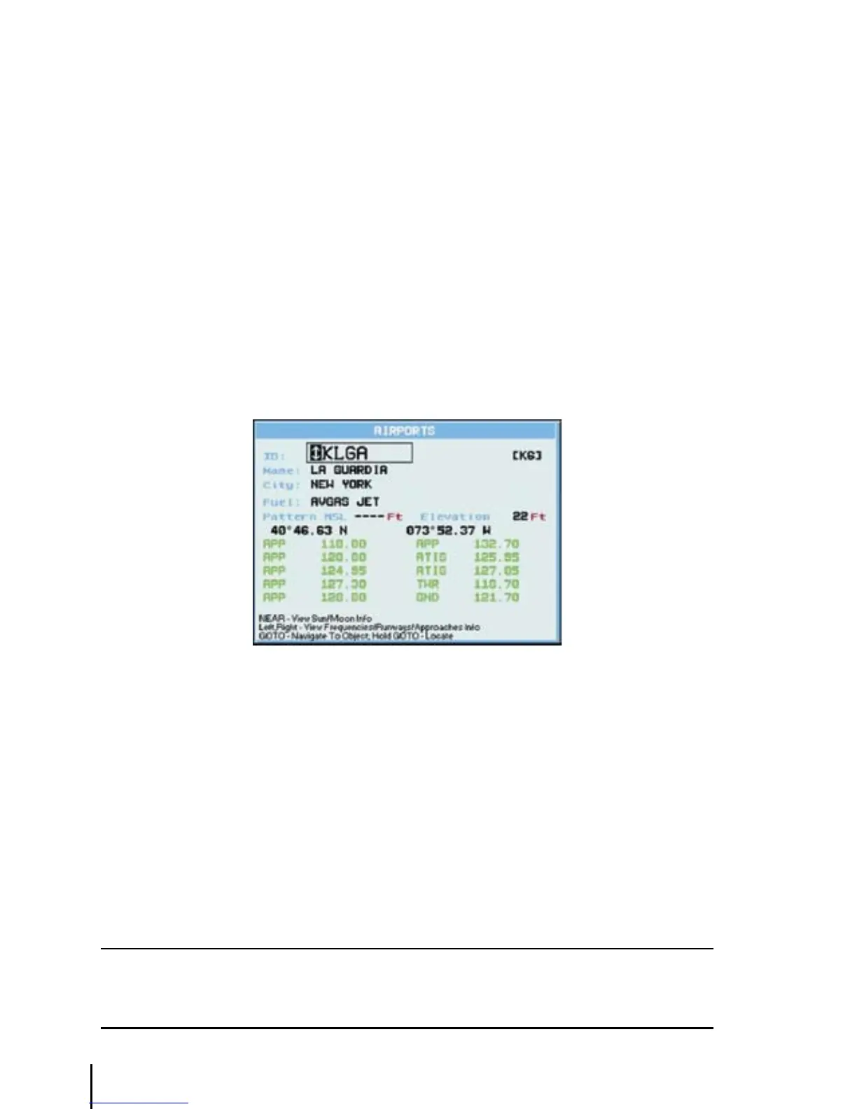 for the airport. If a GPS fix is present, the information will automatically display. If no GPS fix is