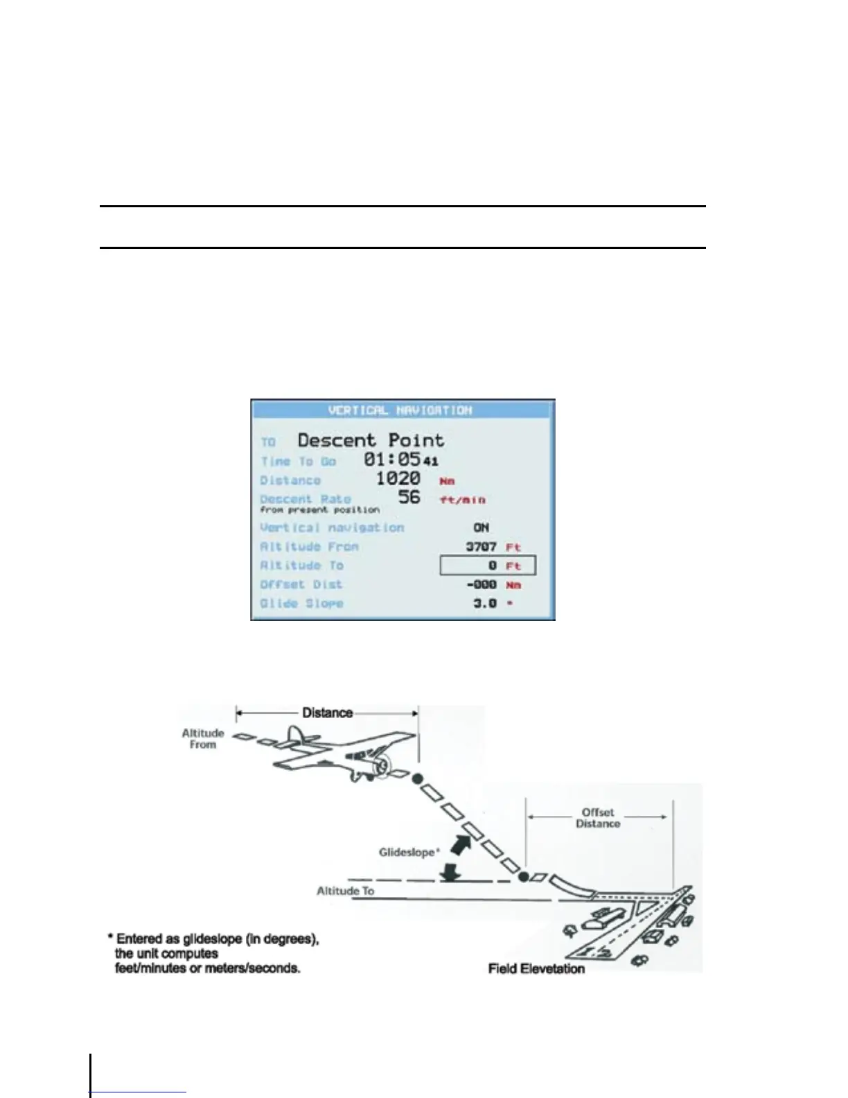 Some values are automatically displayed. Time To Go, Distance, Descent Rate and Altitude From