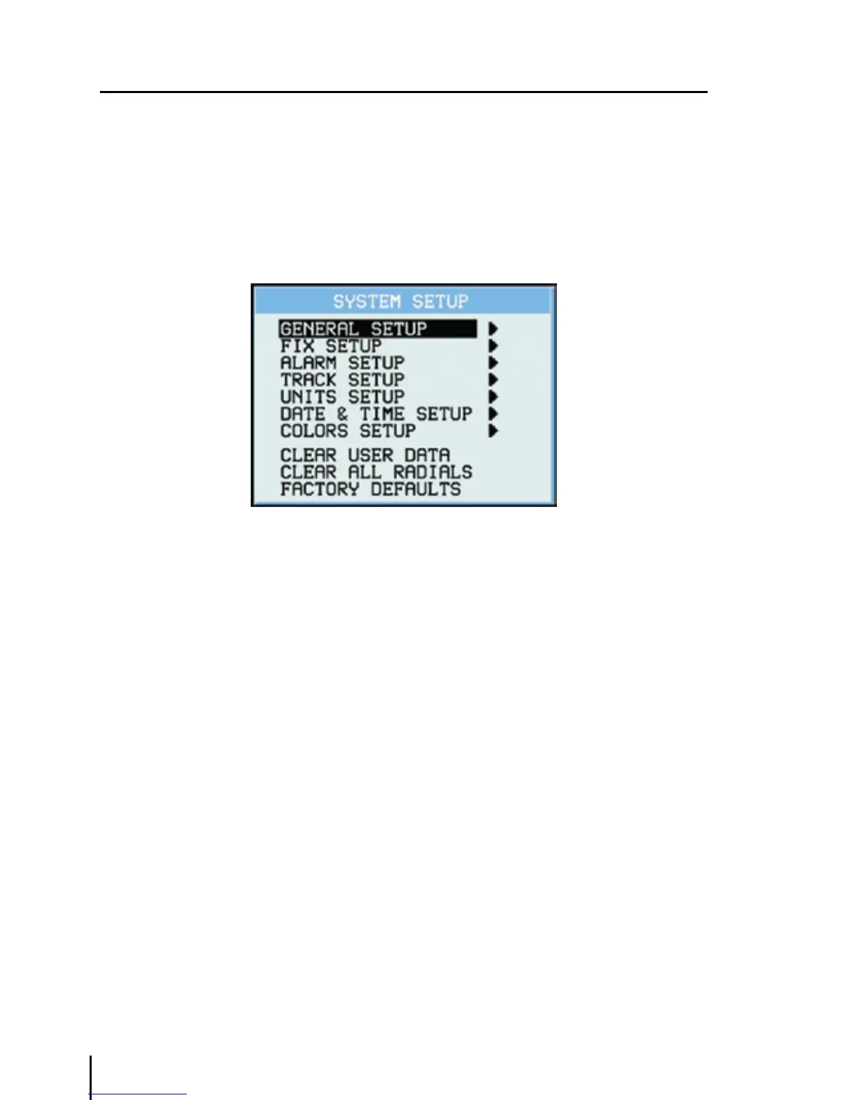 Once you are in the System Setup Menu, use the cursor key to highlight the sub-menu desired and