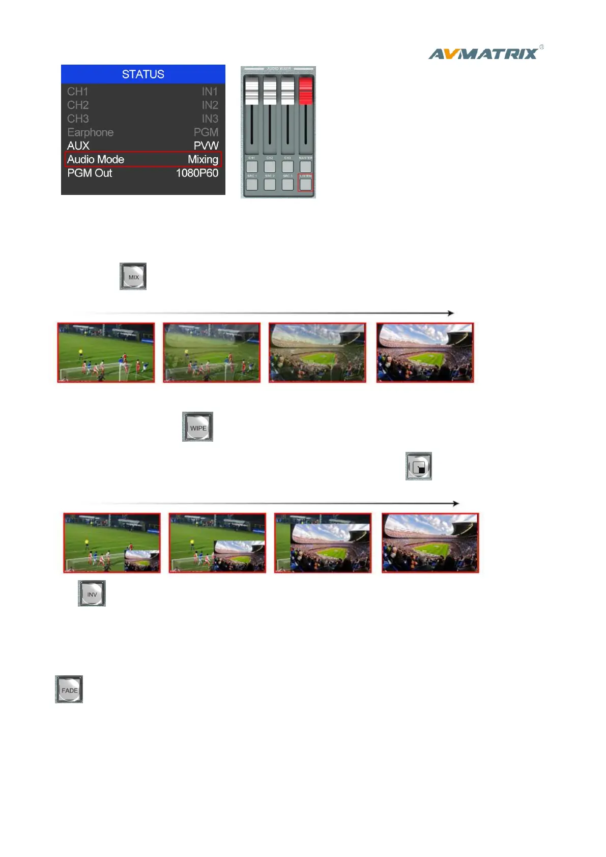 turns on it is active. Then use T-Bar or AUTO to operate the transition. The MIX transition effect as below