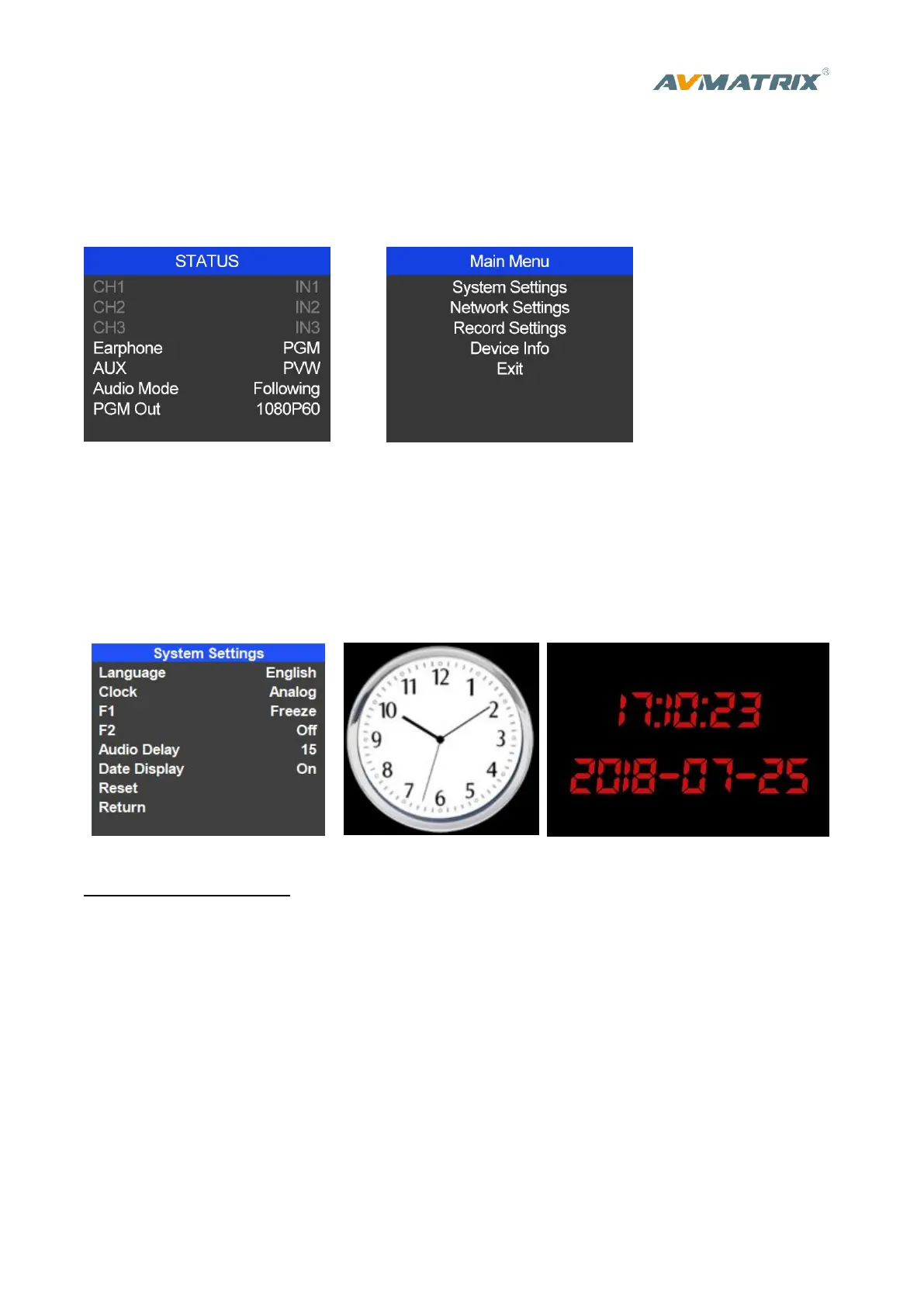 Entering system settings from the menu to switch the real-time clock shown in Analog or Digital.