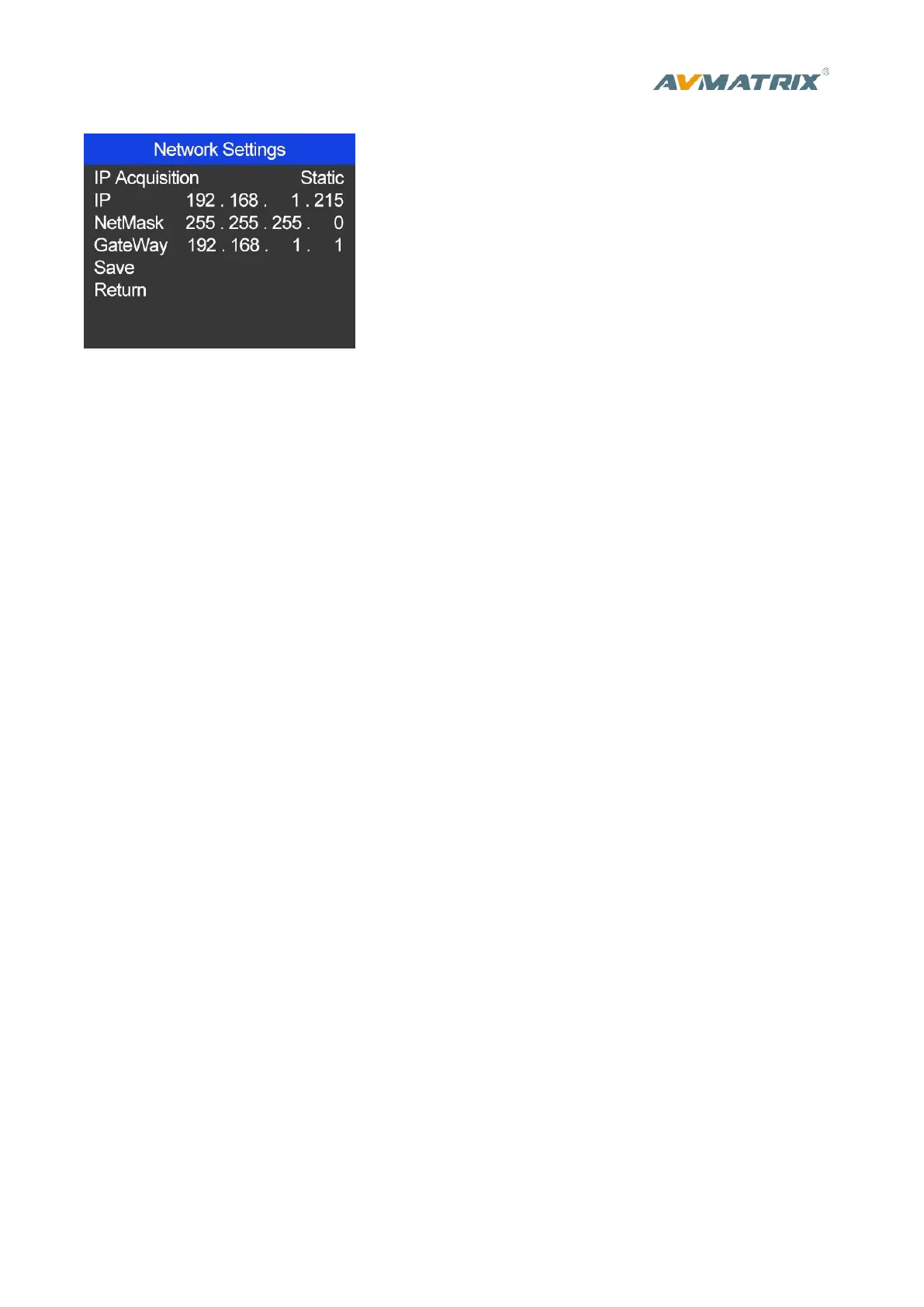 AVMATRIX PVS0615U - Netmask; Gateway; Record Settings