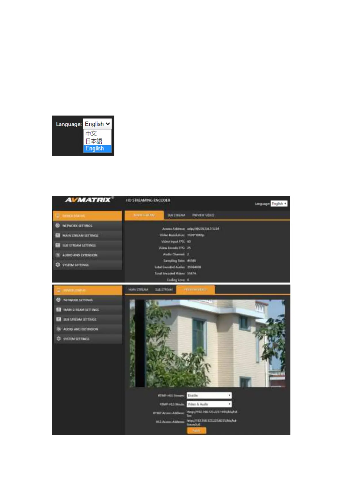 The status of MAIN STREAM and SUB STREAM can be checked on the web page. And
