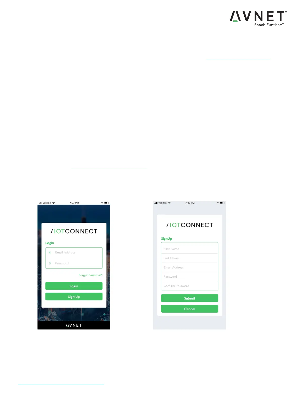 After mobile app sign-up is complete, you can login to the IoTConnect Web Portal: https://avnet.iotconnect.io using