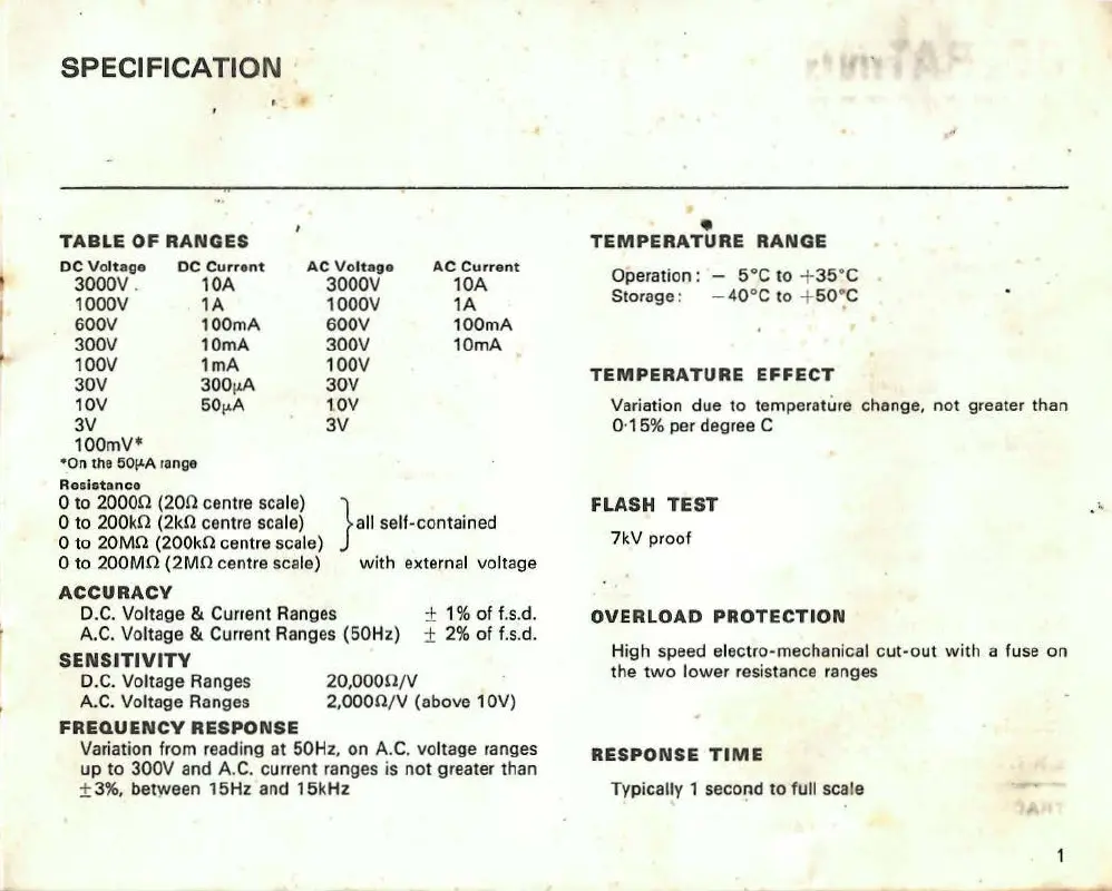 Variation from reading at 50Hz, on A.C. voltage ranges