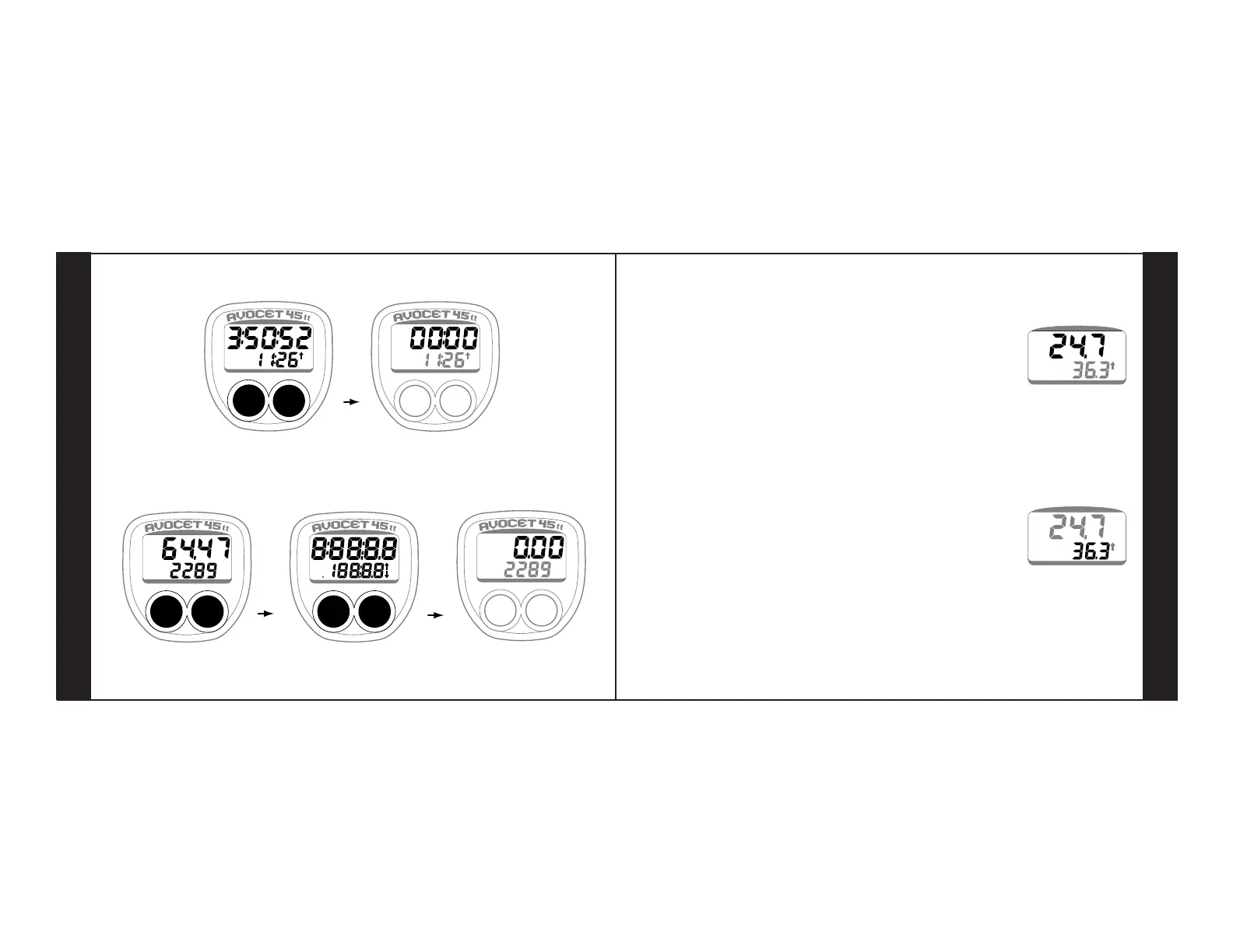 GLOBAL RESET. To reset all functions except Total Distance, hold both buttons about 5