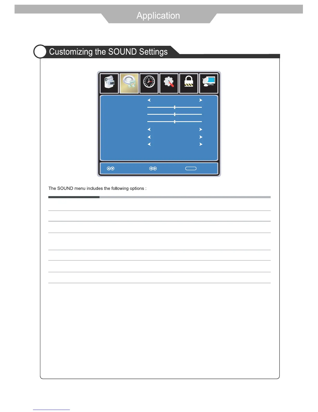 Balance To adjust the balance of the left and right sound track, or turn off the volume of the