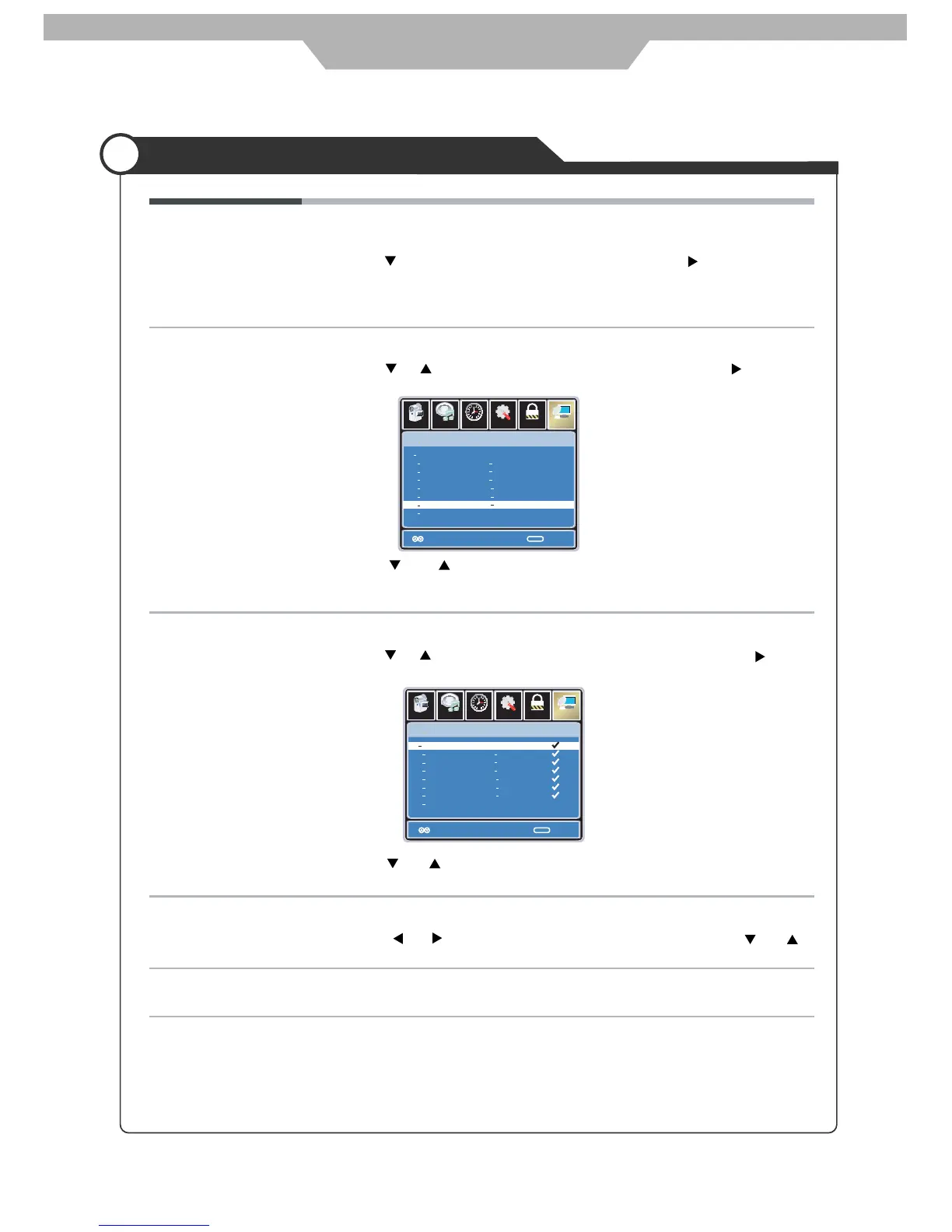 Use and button to highlight the desired item, then press OK