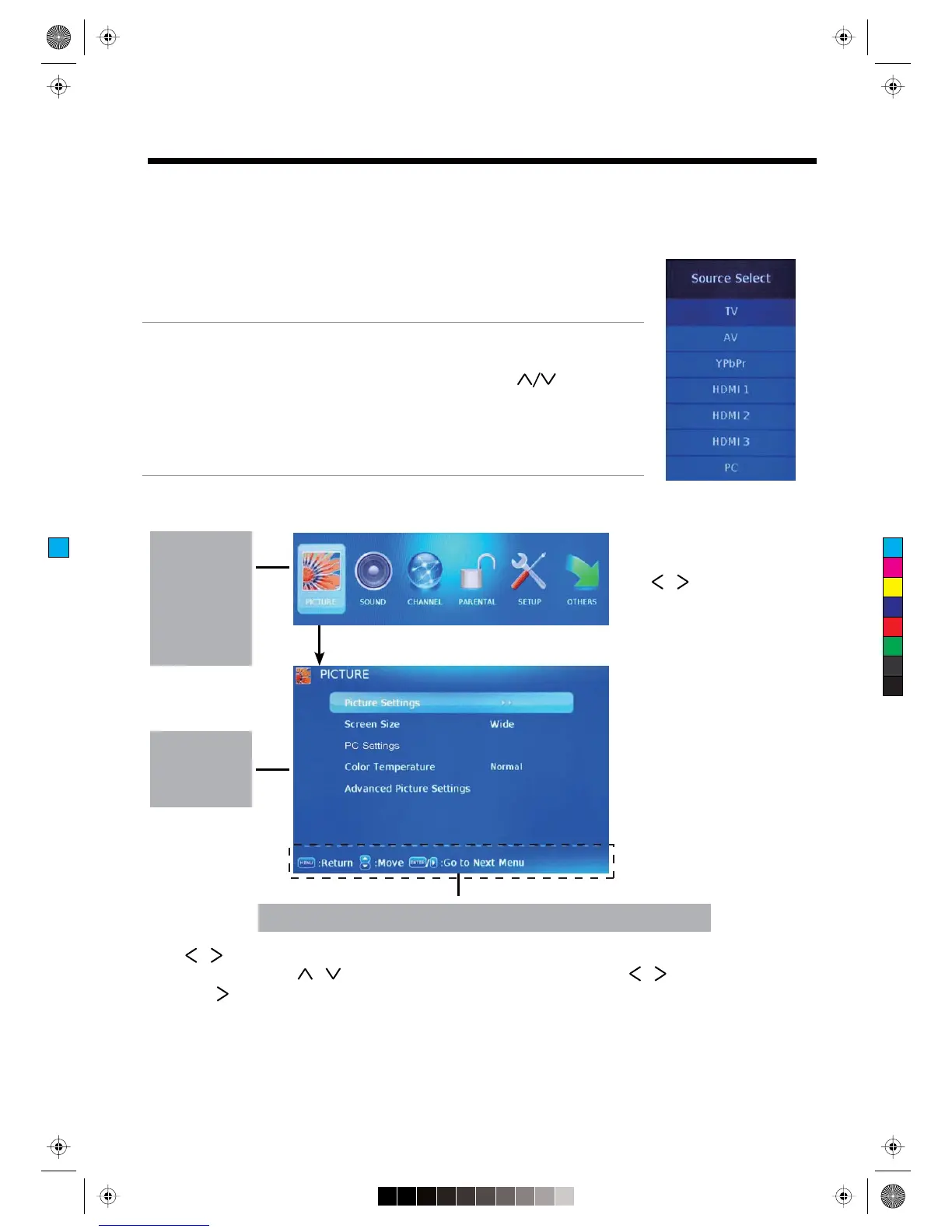 source menu, and use CH+/- button on the TV set or