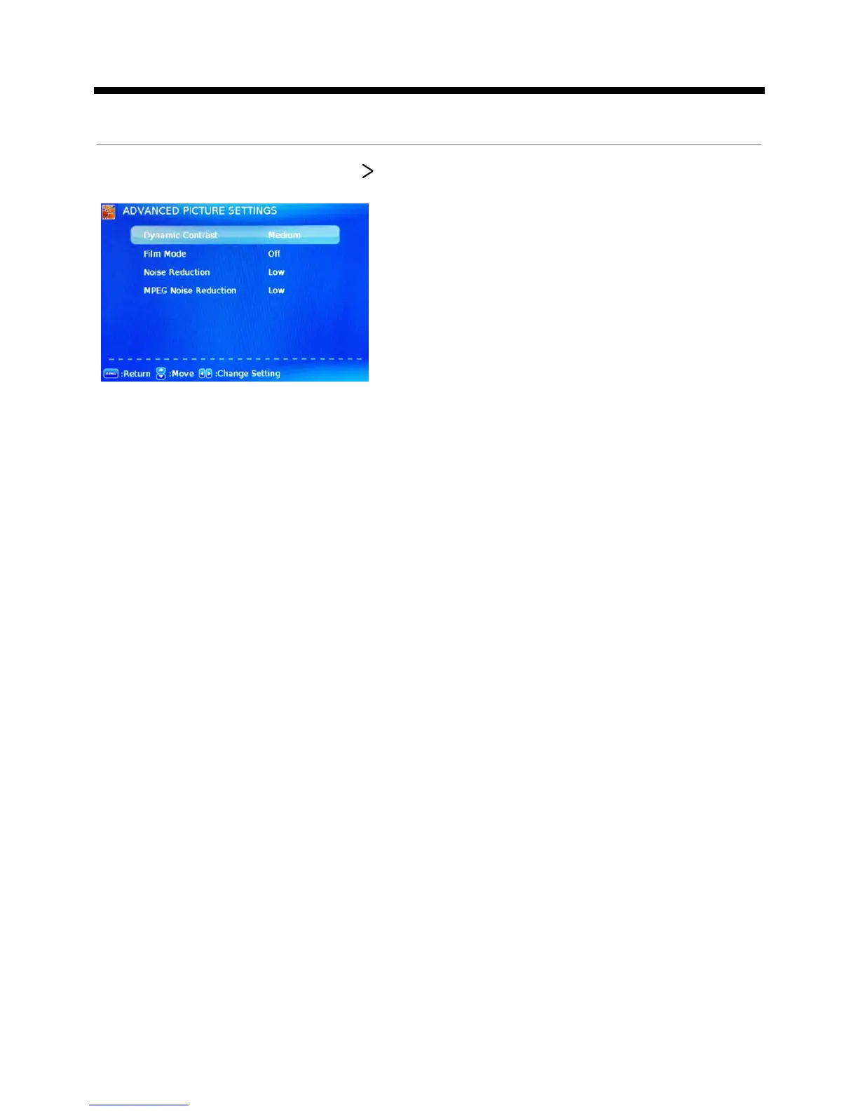 Advanced Picture Settings: Press button to enter the Advanced Picture Settings.