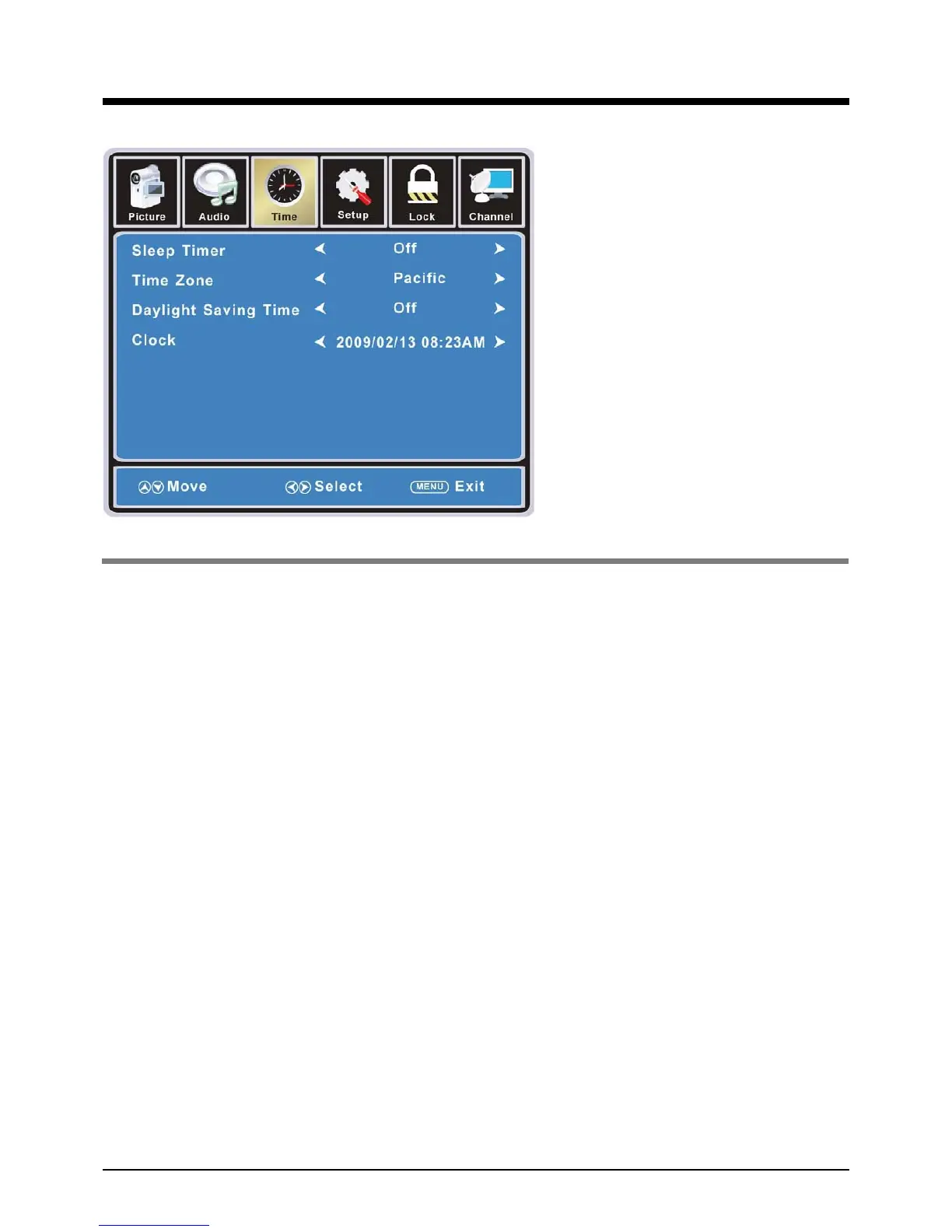 Clock: User can not change time manually during DTV mode, for time is from signal source