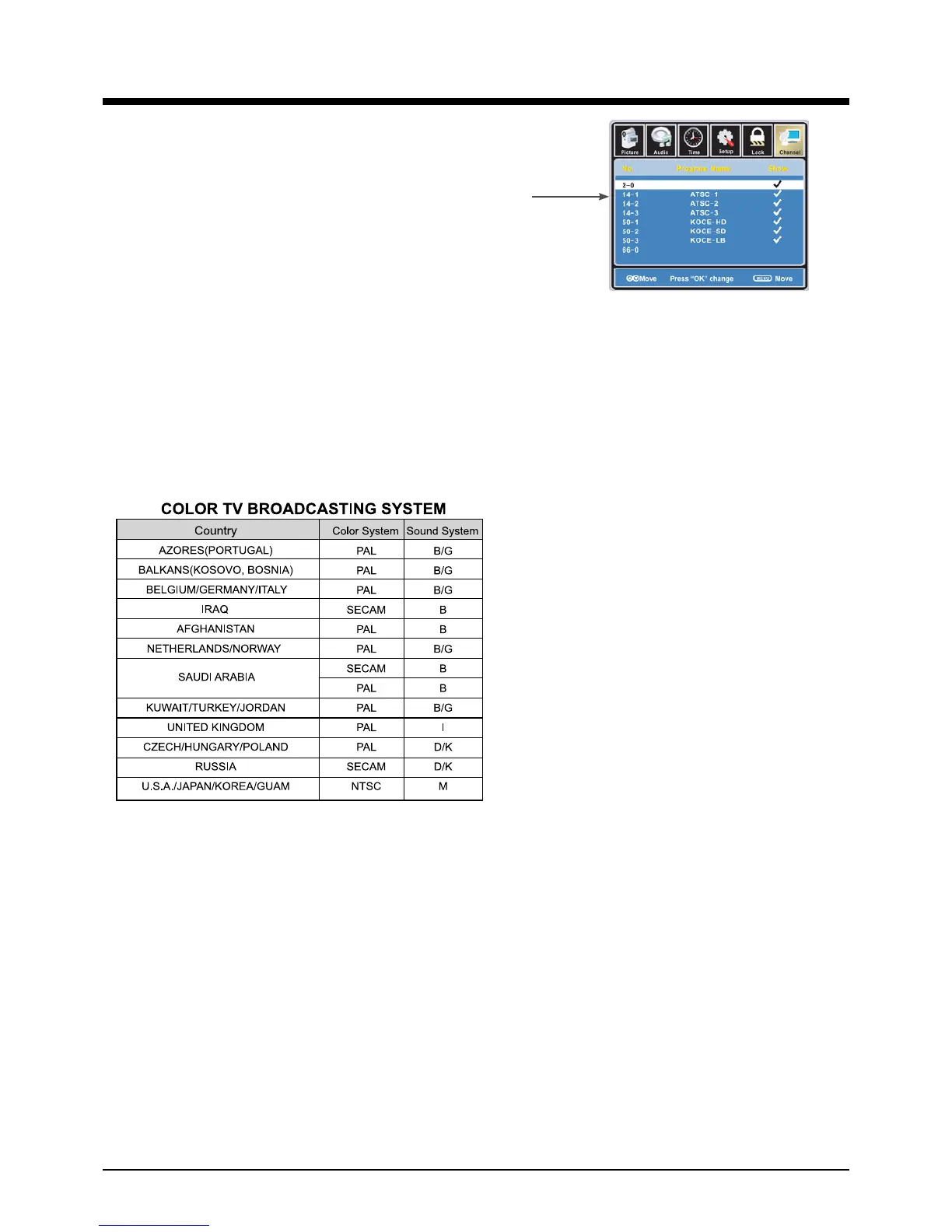 After selecting Nation System and TV sound system according to your