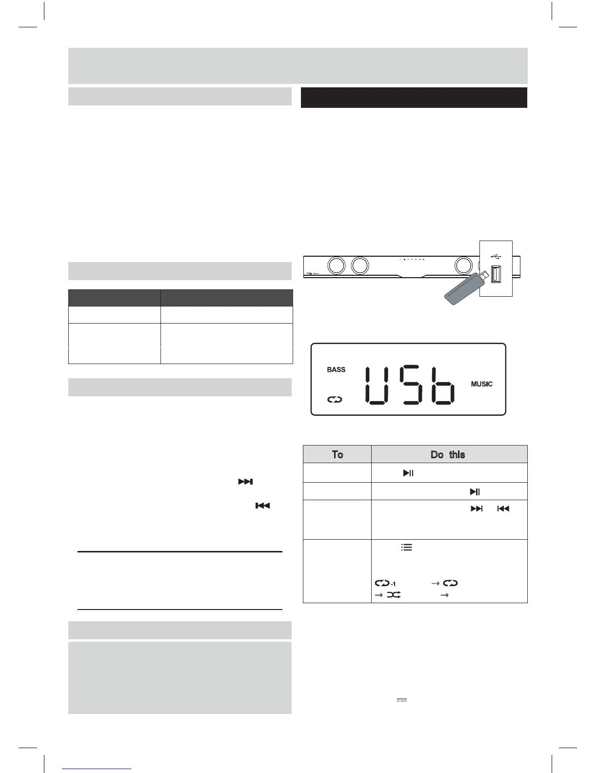1. Connect a USB storage device to the sound bar.