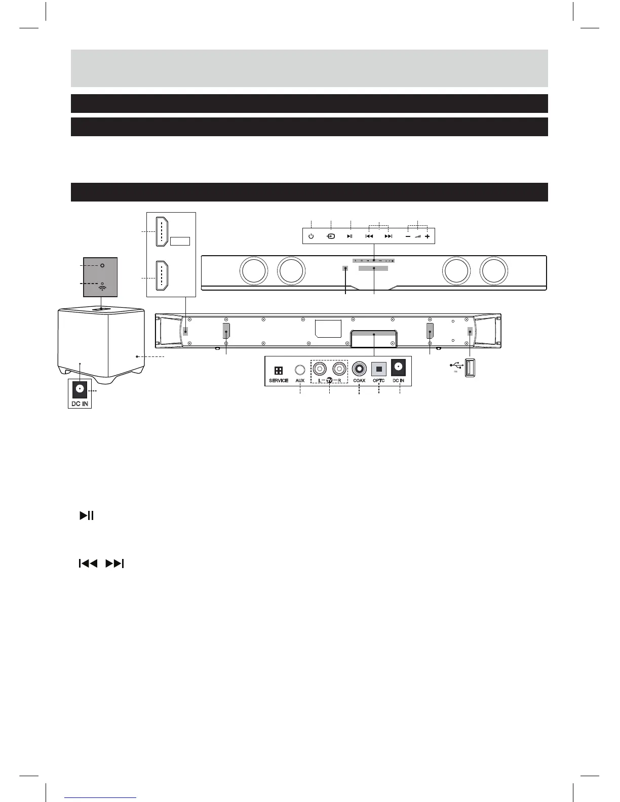 13 DC IN SOCKET of sound bar: