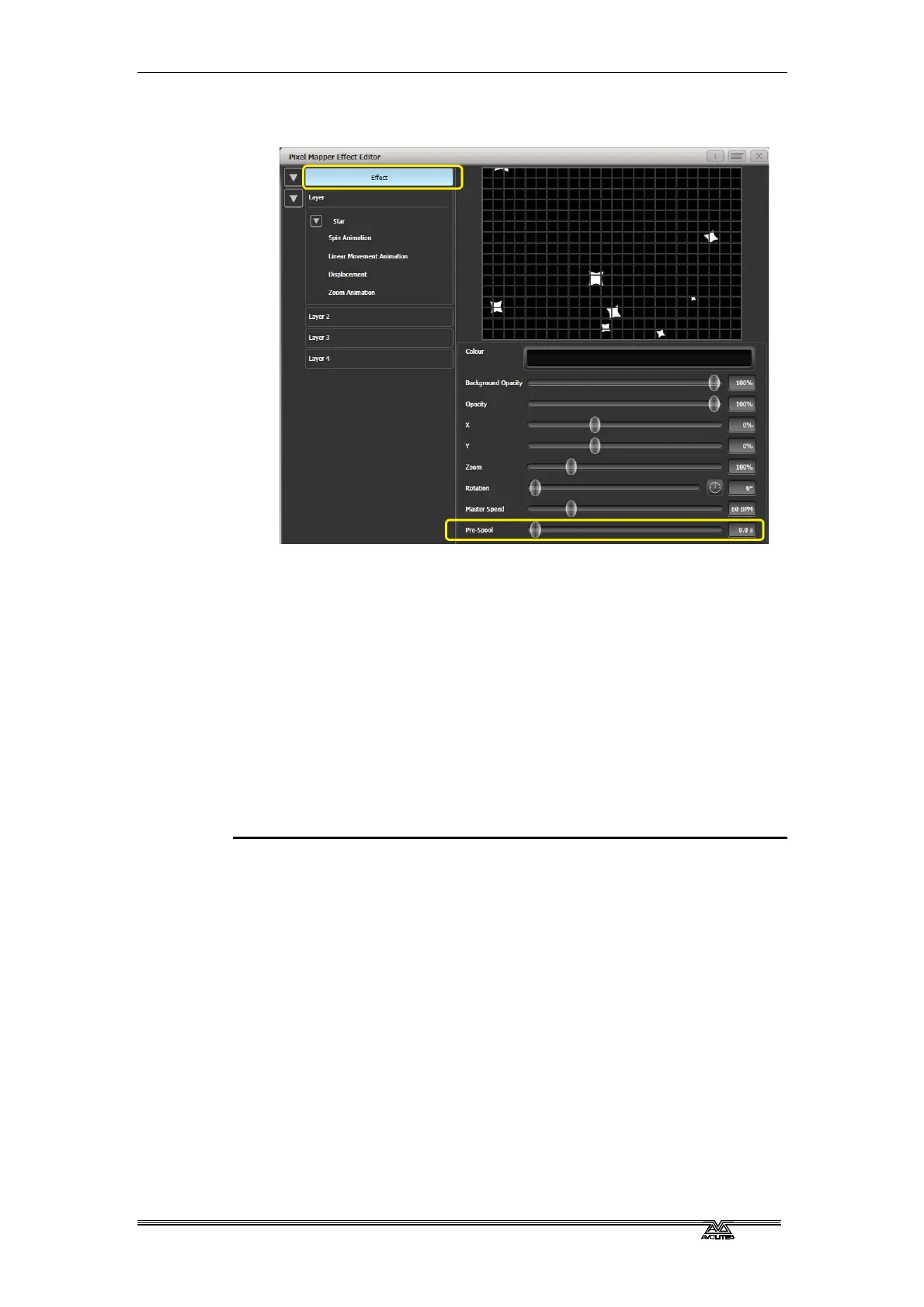9> Click on [Effect] and set 'Pre-Spool' to zero. (This is to