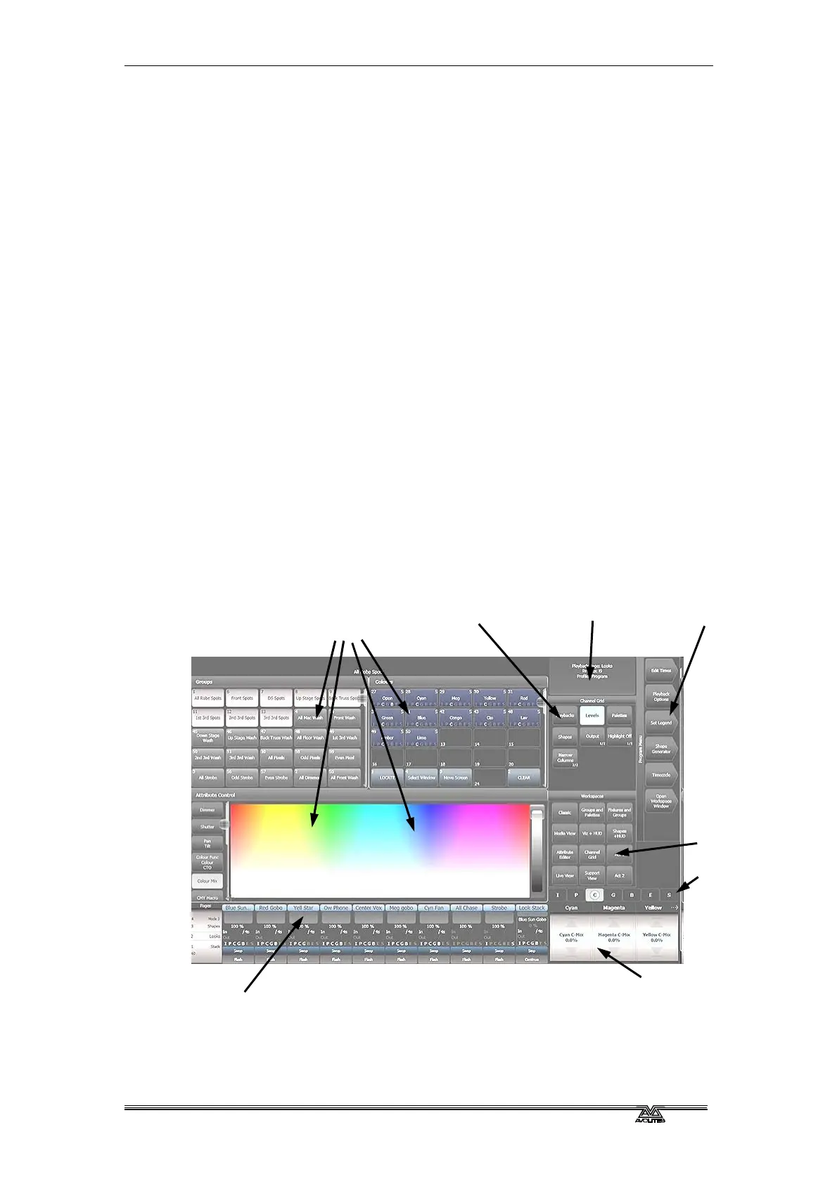 • The Playback faders are used to store and play back cues or chases.