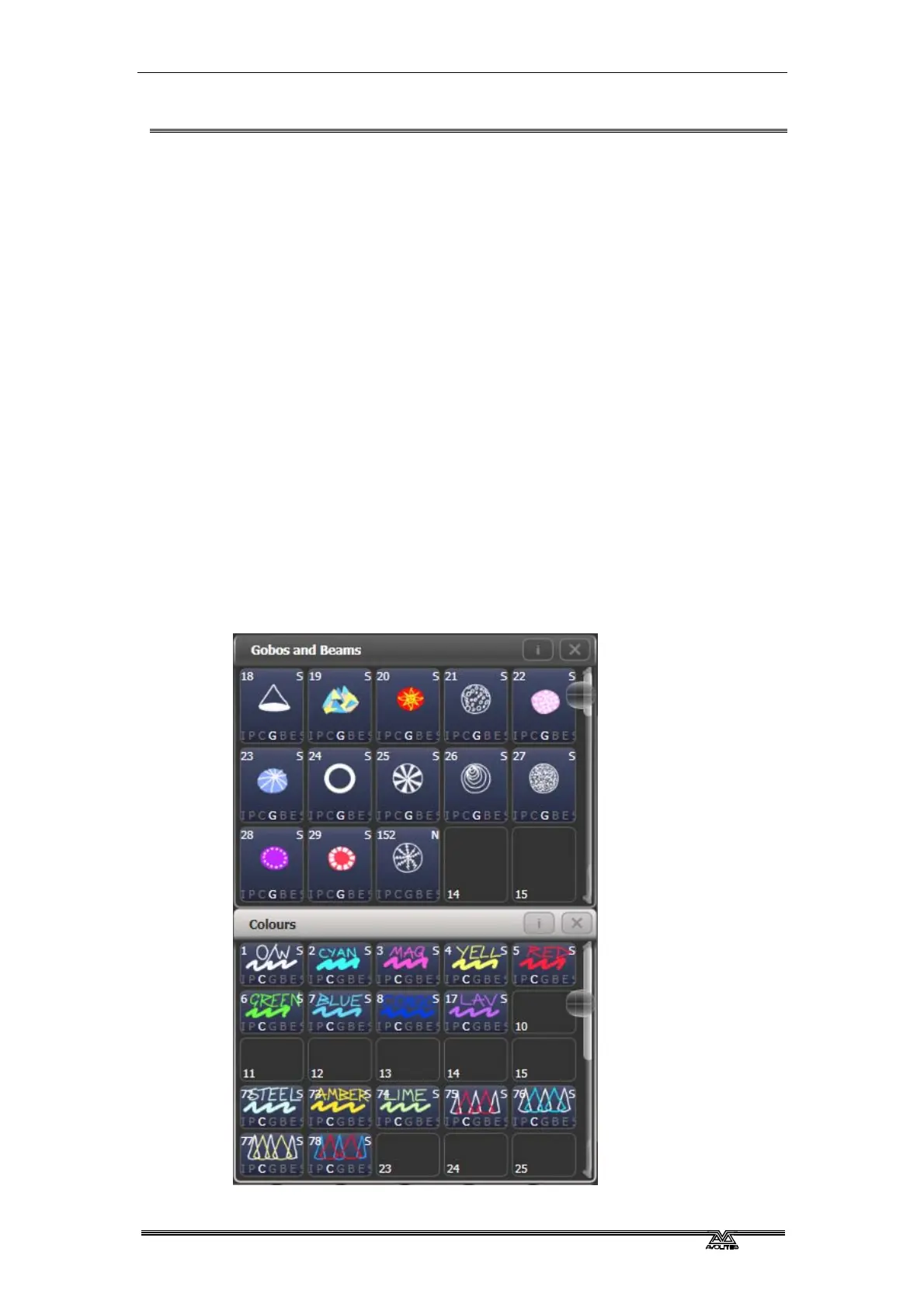 the grey buttons of fader handles and on Macro/Executor buttons.