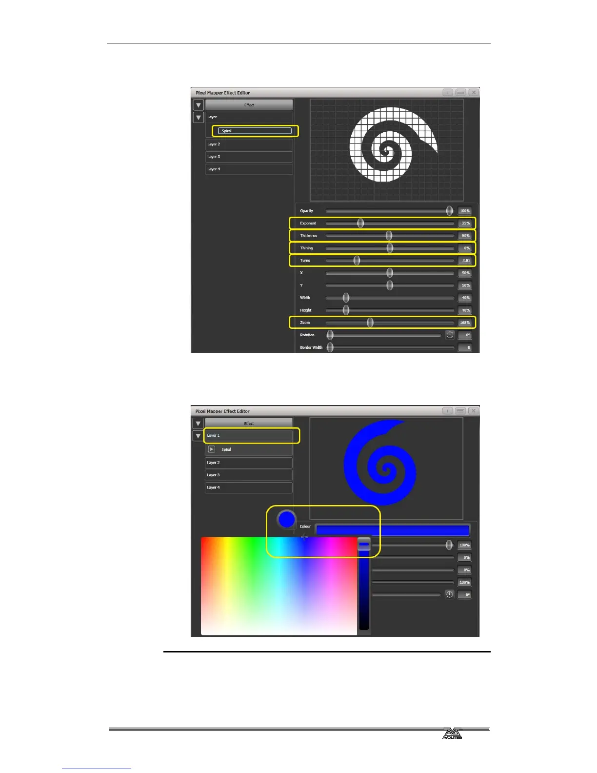 Increase 'Exponent' to around 25%. (This causes the spiral to