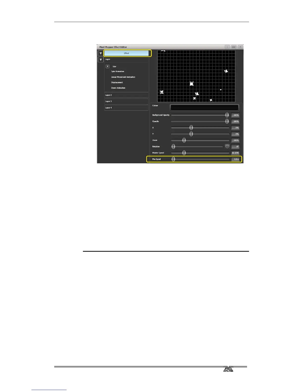 9> Click on [Effect] and set 'Pre-Spool' to zero. (This is to
