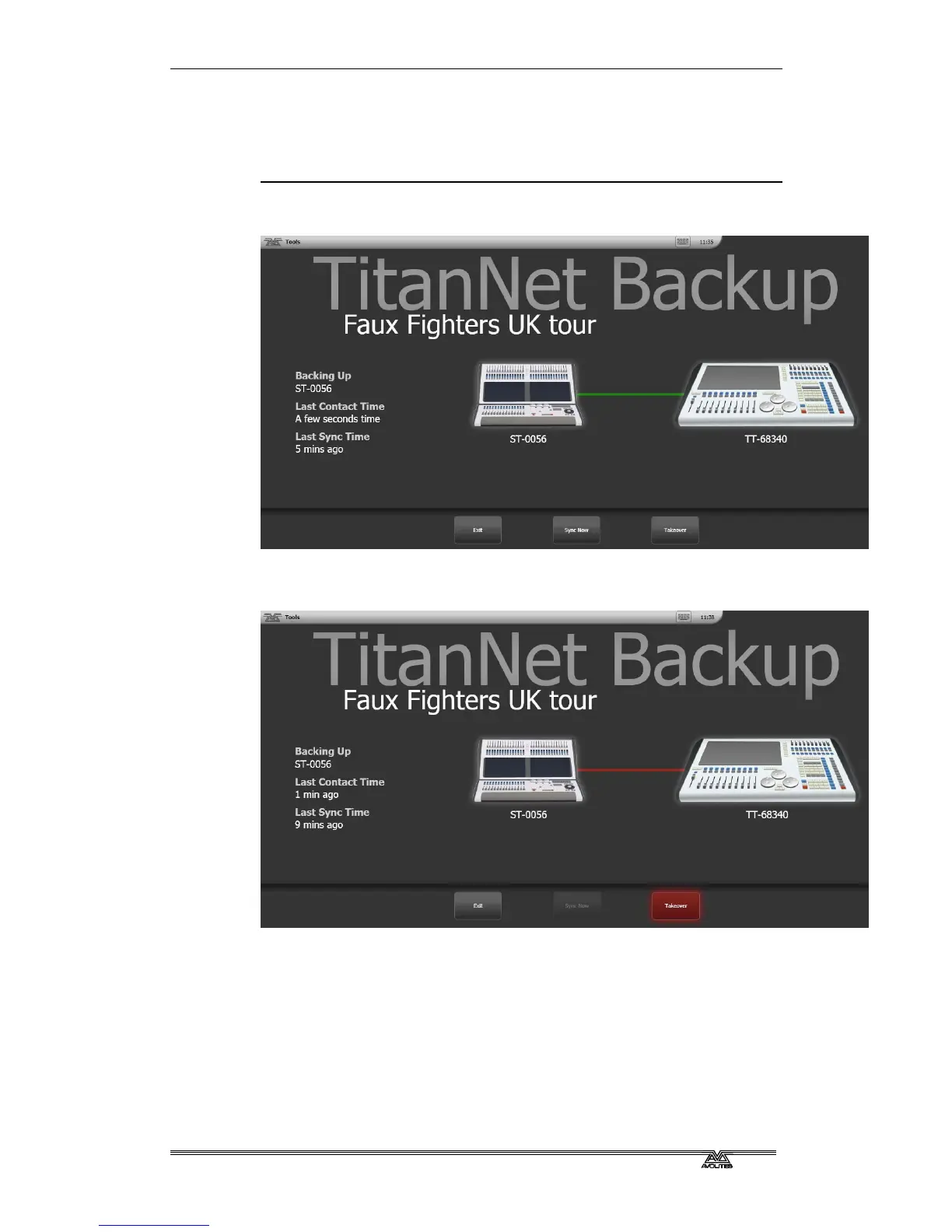 • [Takeover] will enable control on the backup console and
